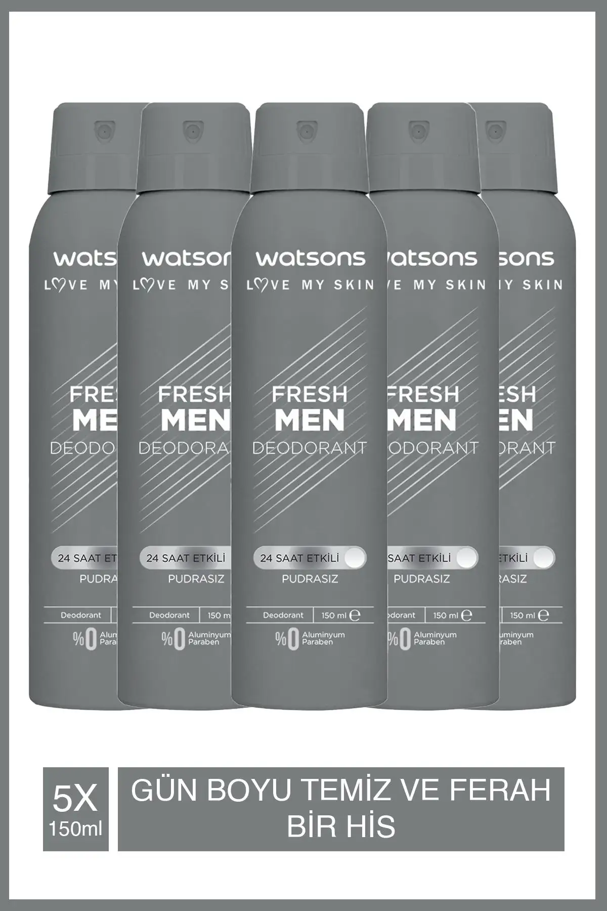 بستهبندی شامل ۵ عدد اسپری ۱۵۰ میلی لیتری است که به راحتی قابل استفاده و حمل میباشد. این محصول به شما کمک میکند تا در هر شرایطی احساس خوبی داشته باشید.