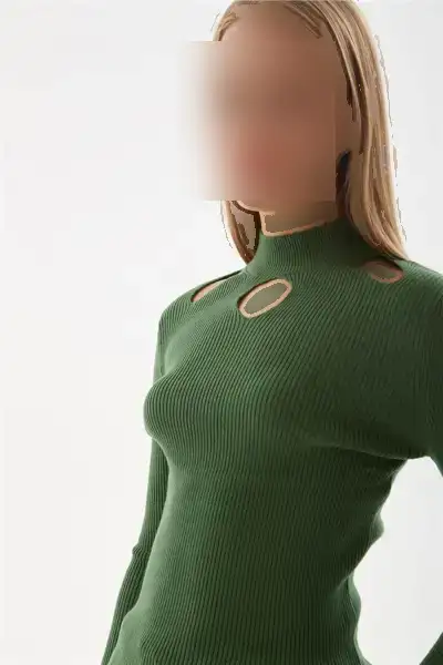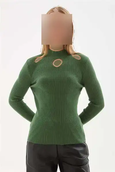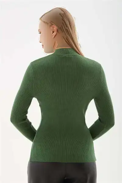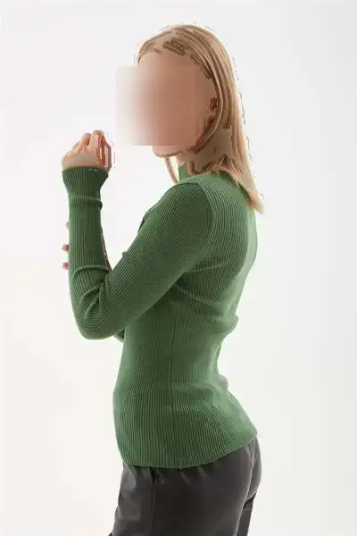 بافت کلاسیک آستین بلند زنانه ترک رنگ سبز – 12246