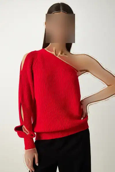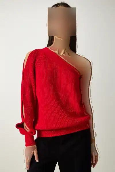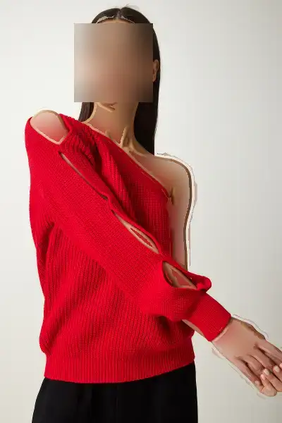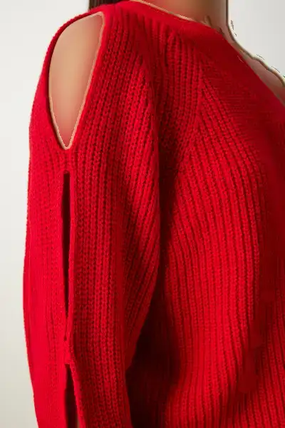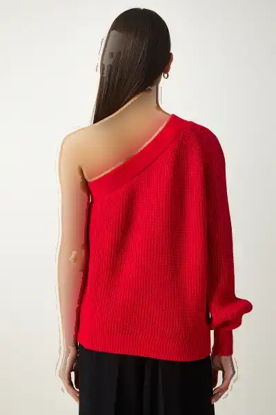بافت کلاسیک تک آستین زنانه ترک رنگ قرمز – 12251