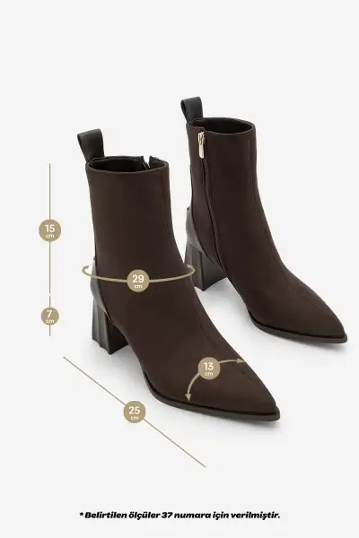 بوت پاشنه بلند زنانه نوک تیز و پاشنه پهن به رنگ قهوهای ترک – 13166