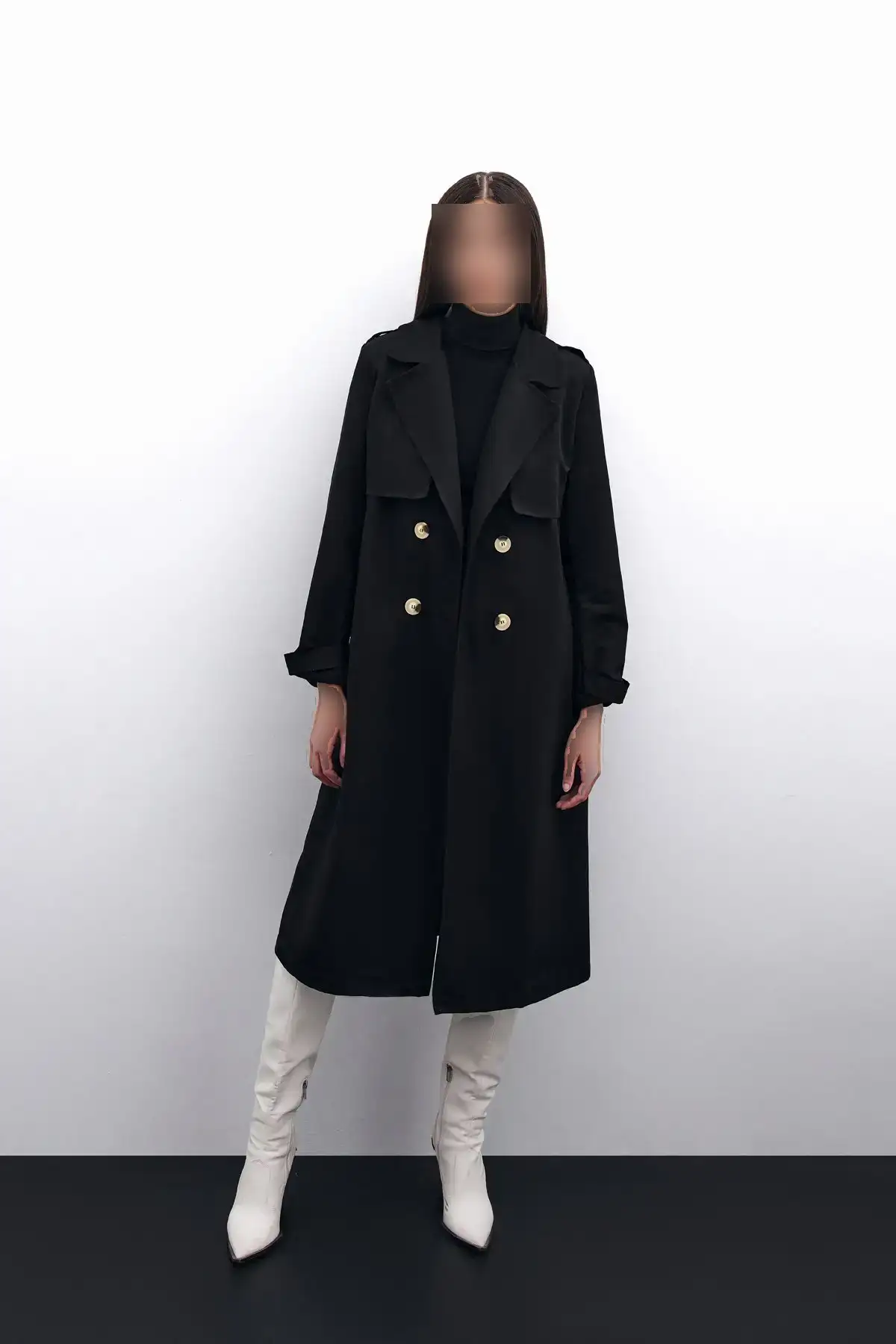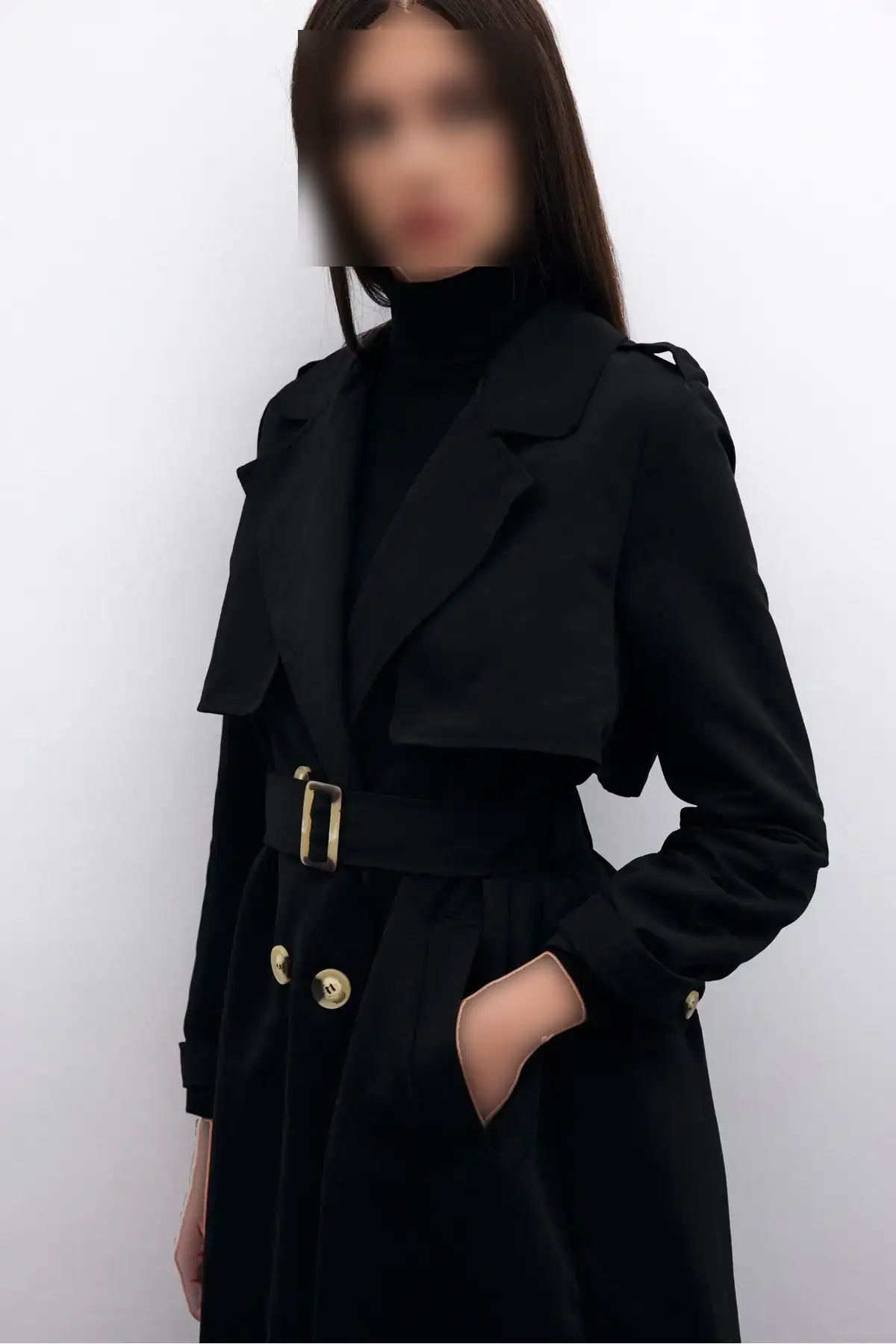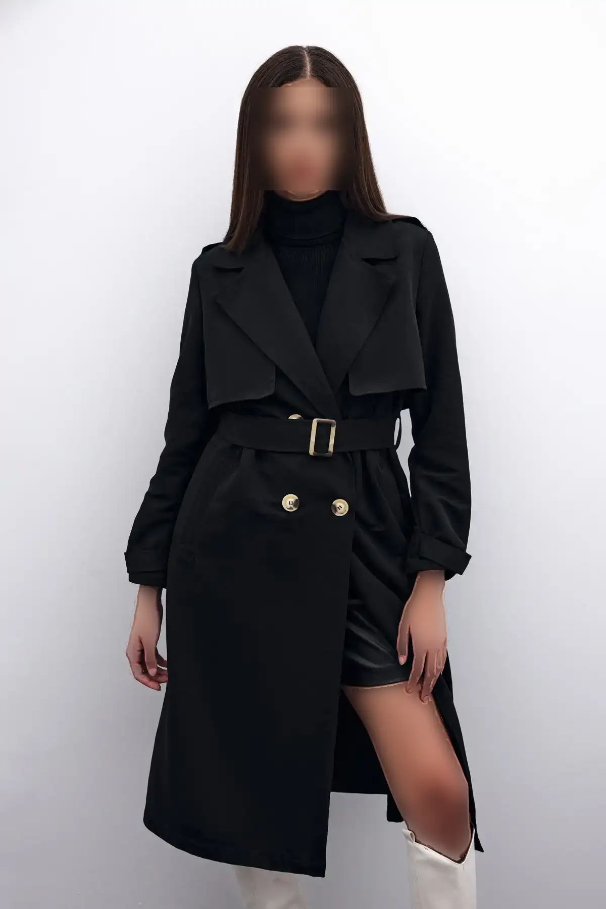 ترنچکت بلند با کمربند مشکی ترک