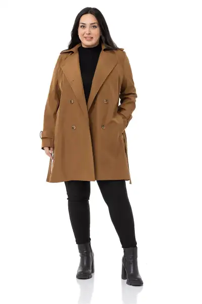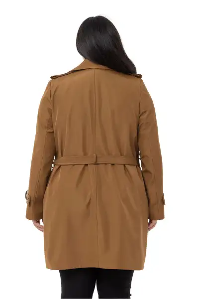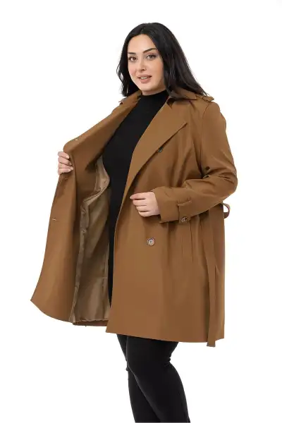 ترنچکت سایز بزرگ زنانه ترک شکلاتی با کمربند و آستر دار – 12530