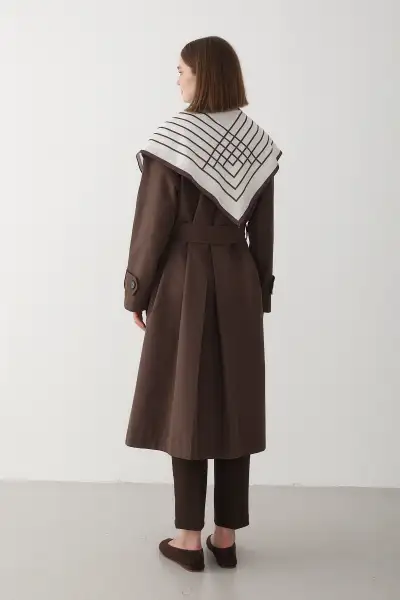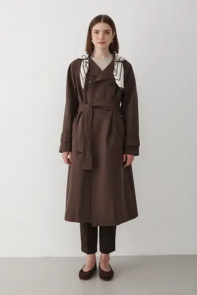 ترنچ زنانه با یقه کلاسیک قهوهای ترند سال 2025 – 12572