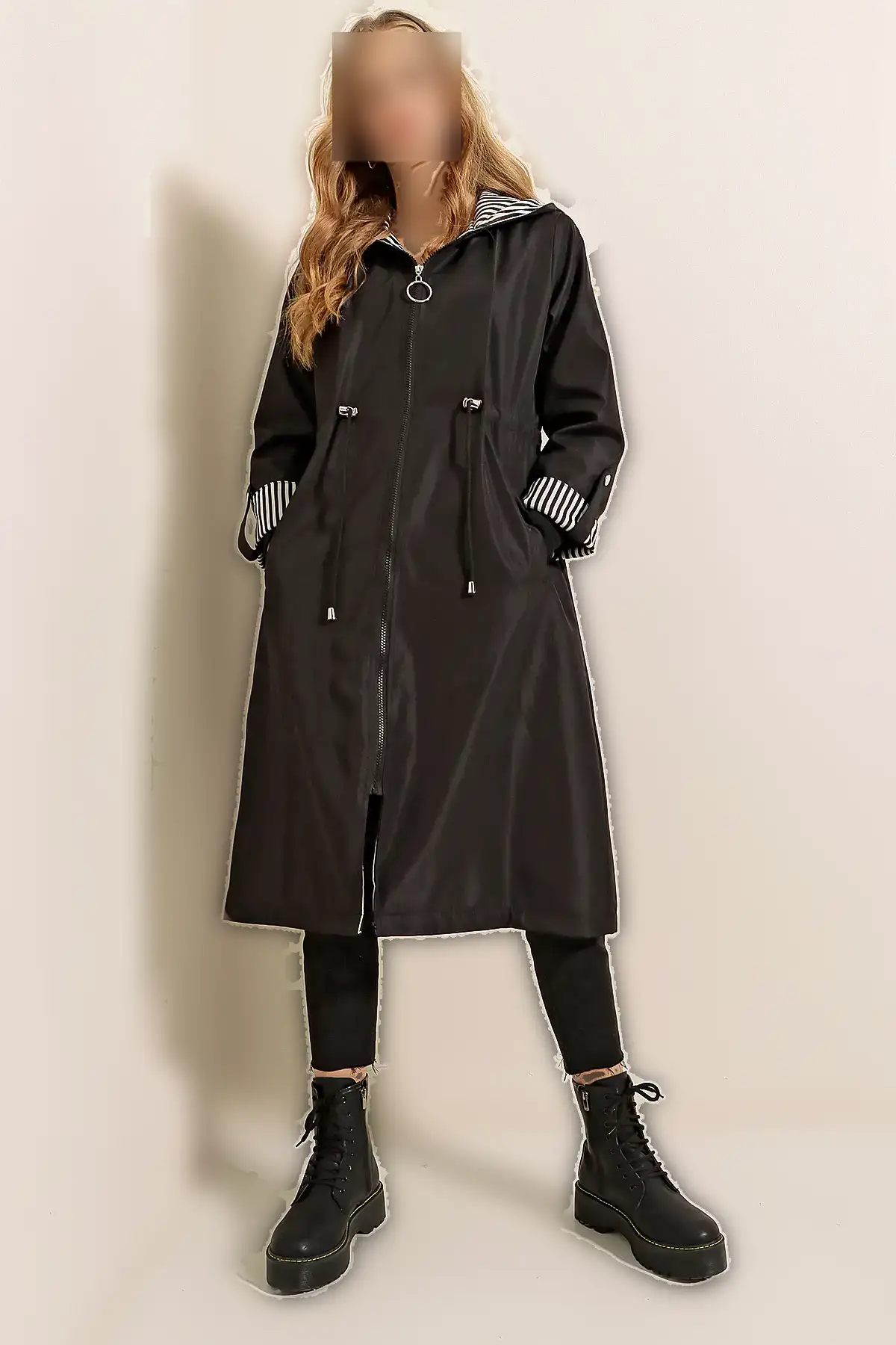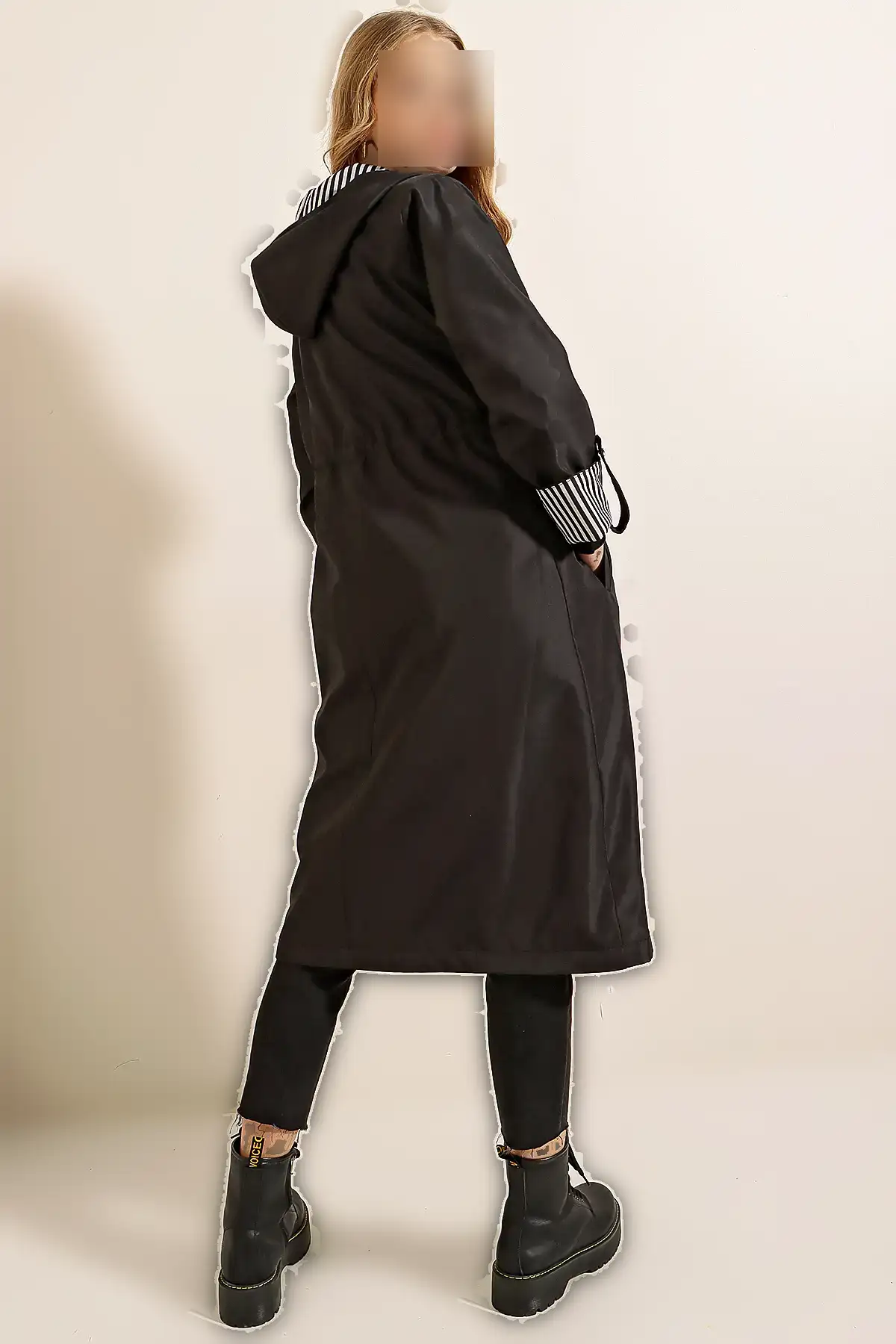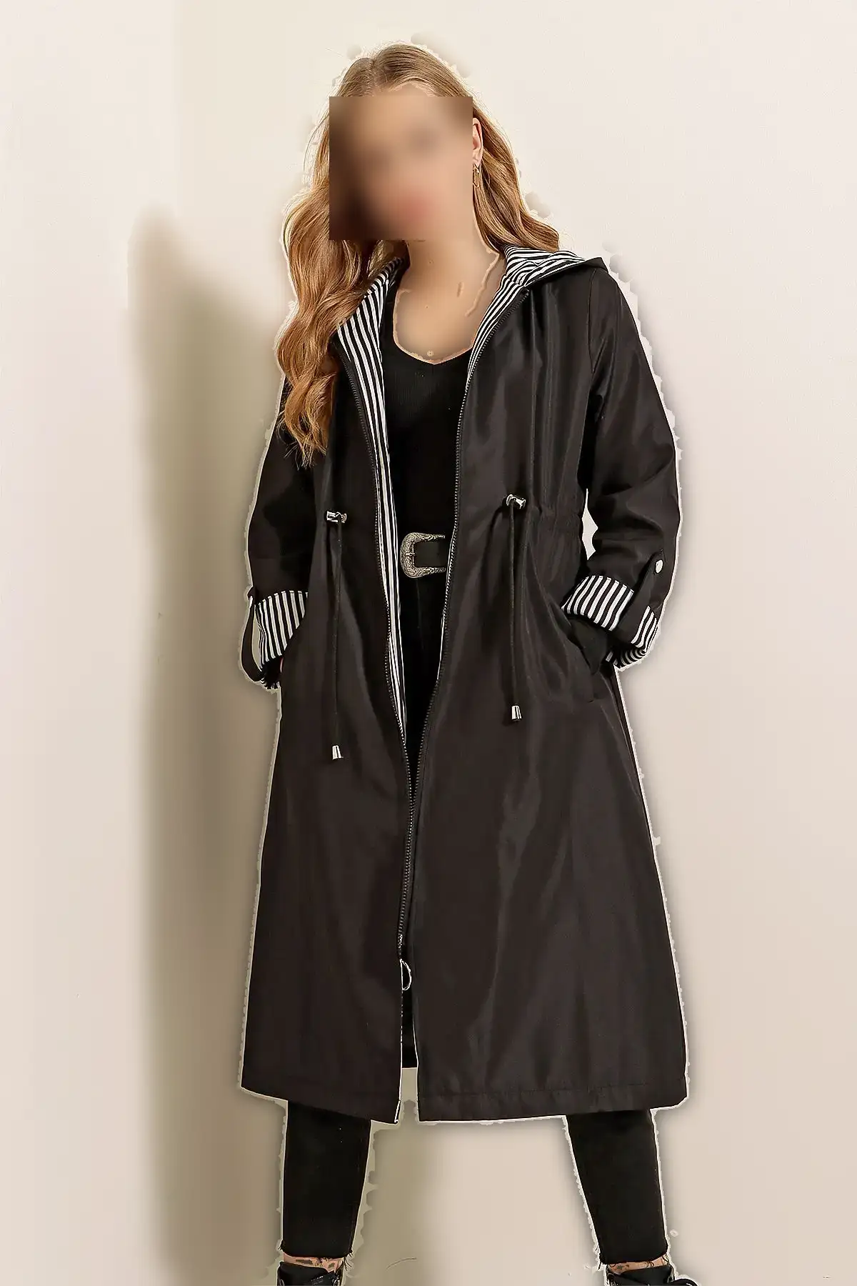 ترنچ کت و پالتو زنانه مشکی با کمر کش دارای کلاه