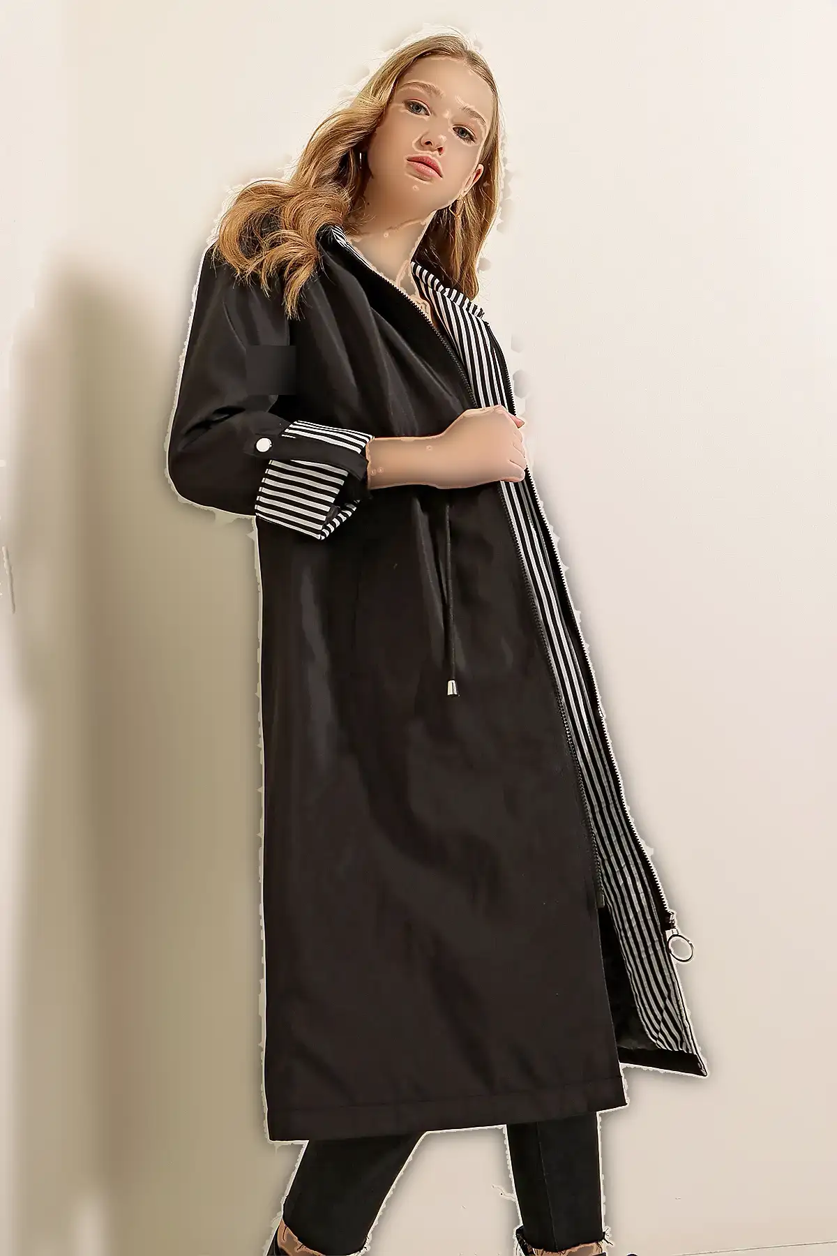 ترنچ کت و پالتو زنانه مشکی با کمر کش دارای کلاه گزینهای عالی برای بانوانی است که به دنبال استایل زیبا و خاص هستند. این کت با طراحی زیبا و جذاب خود، به سادگی میتواند به یک بخش اصلی از کمد لباس شما تبدیل شود.