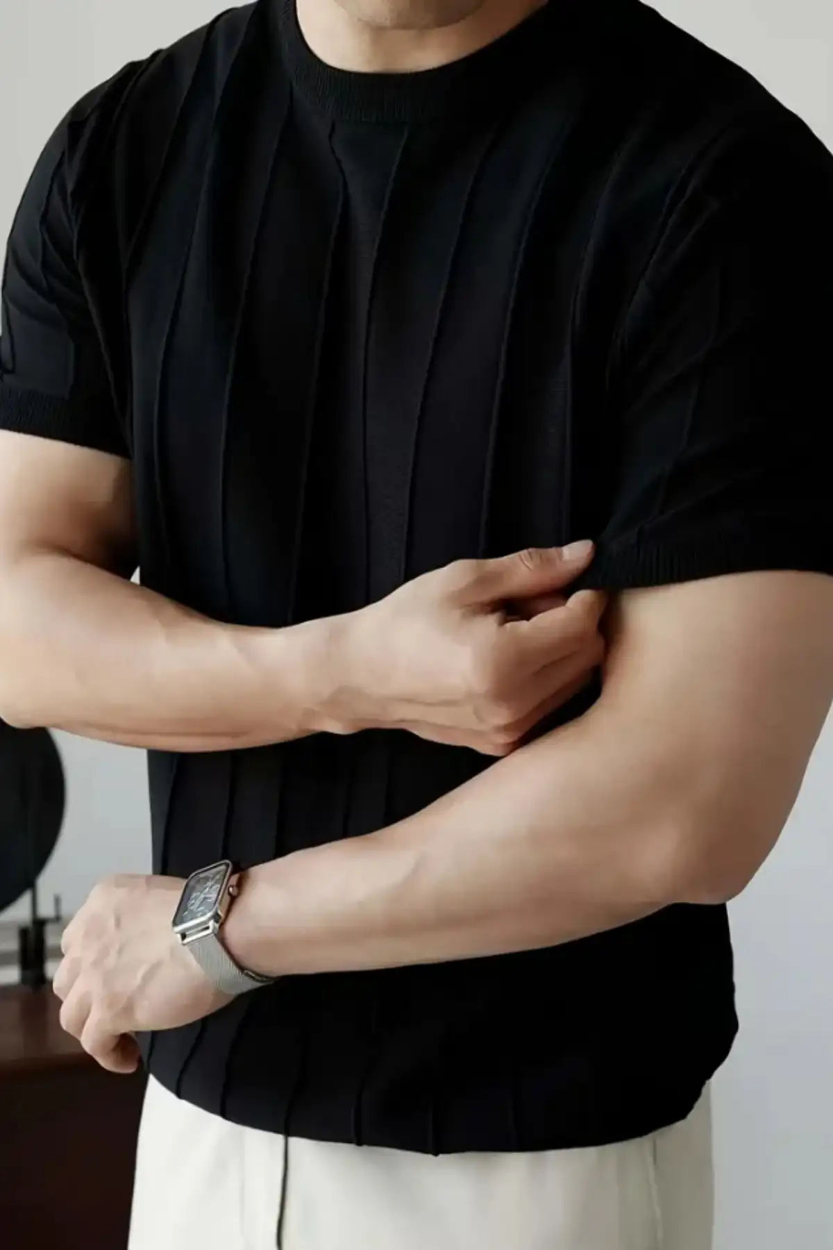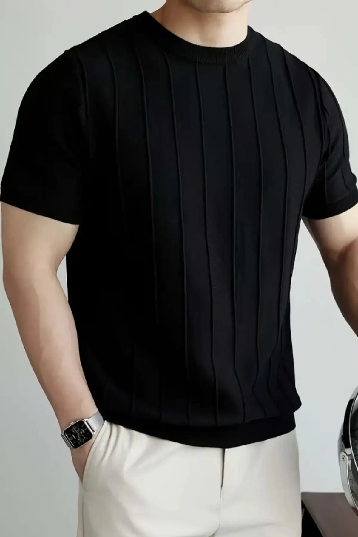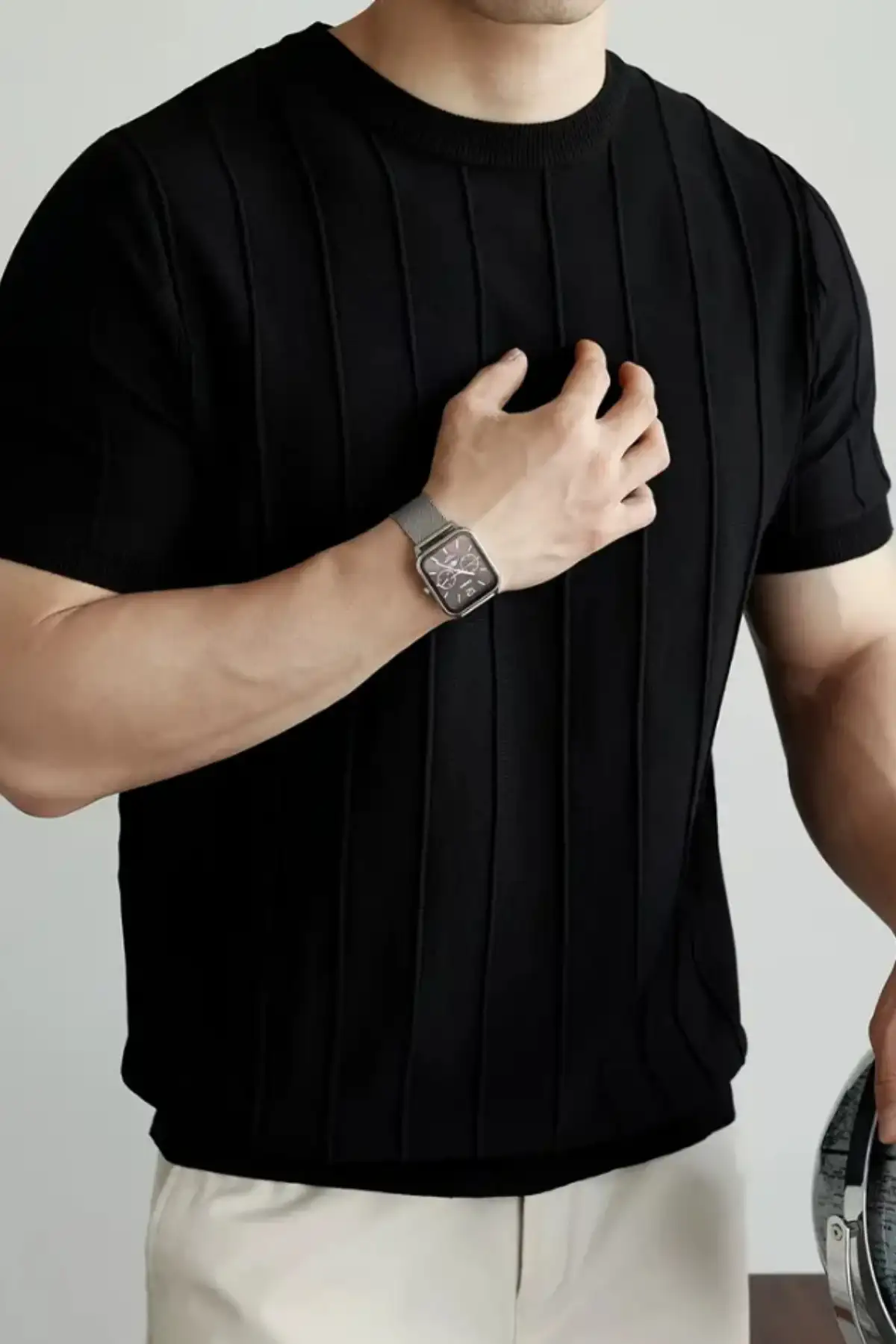تیشرت ترک یقه گرد مردانه مشکی یک انتخاب عالی برای فصل تابستان است. طراحی شیک و جذاب آن مطمئناً توجه همگان را جلب میکند.