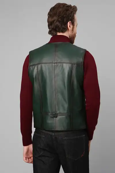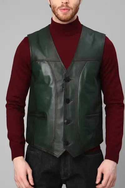 جلیقه چرمی اصل به رنگ سبز مردانه کلاسیک – 12711