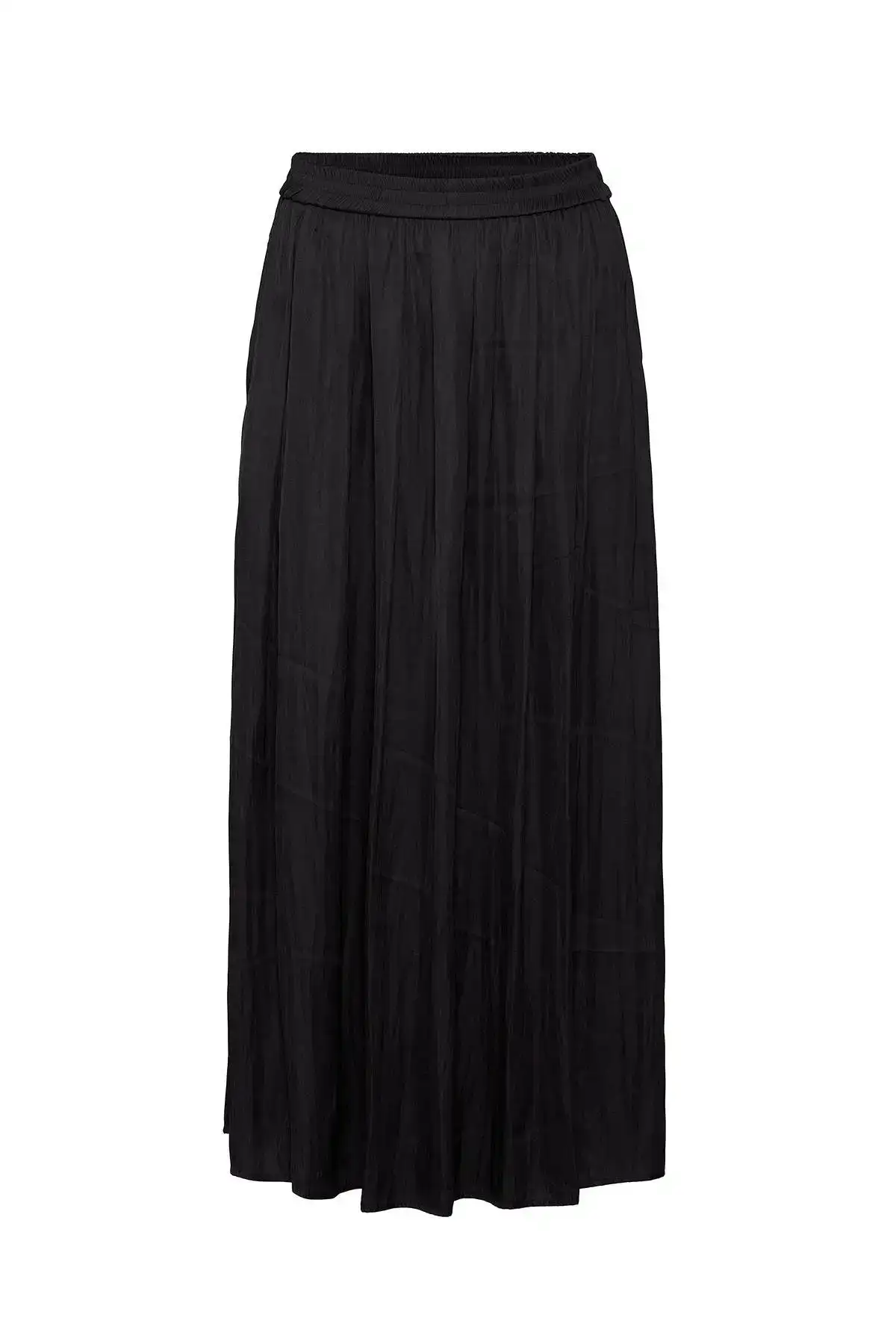 دامن زنانه سیاه رنگ با طراحی بلند و چیندار