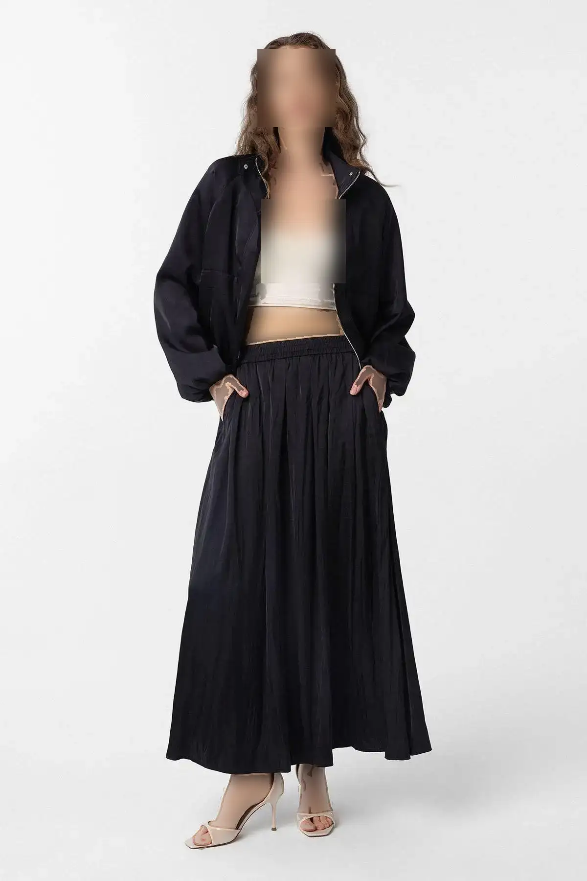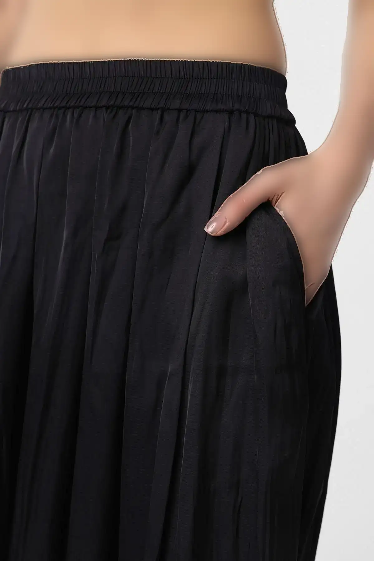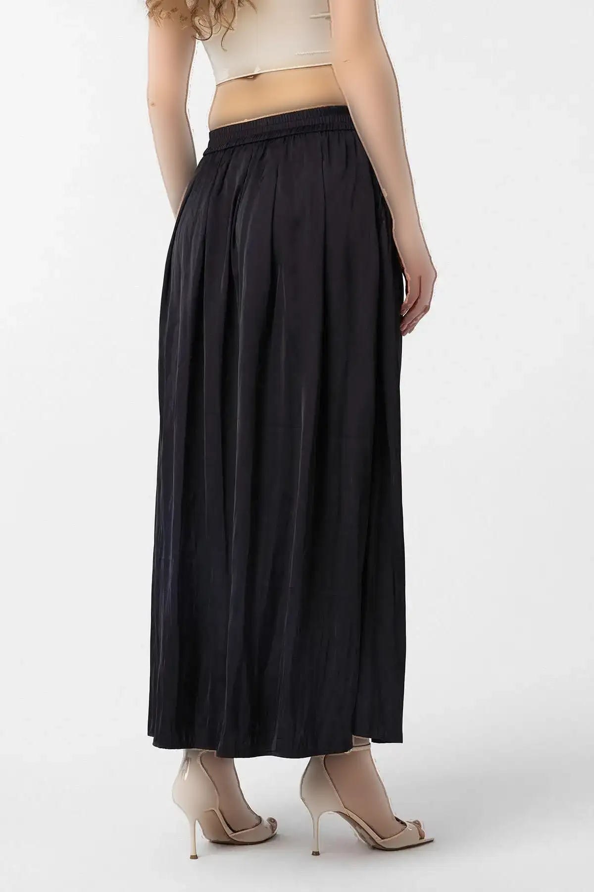 دامن زنانه سیاه رنگ با طراحی بلند و چیندار – 9186