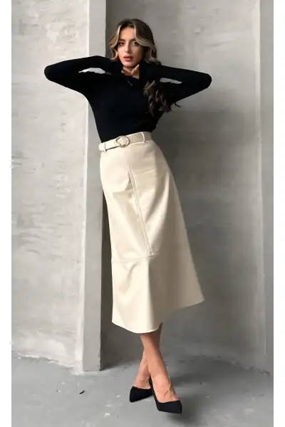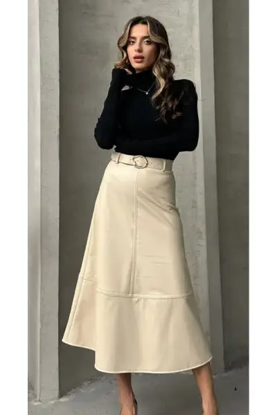 شما می‌توانید این دامن را با انواع بلوزها و تیشرت‌ها ترکیب کنید. این ترکیب ساده و در عین حال شیک، شما را از دیگران متمایز خواهد کرد.دامن پایه‌ای چرم مصنوعی با رنگ کرم عرضه می‌شود، که به راحتی می‌توانید آن را با رنگ‌های مختلف دیگر ست کنید. این رنگ همیشه مد روز بوده و با سلیقه‌های مختلف سازگار است.