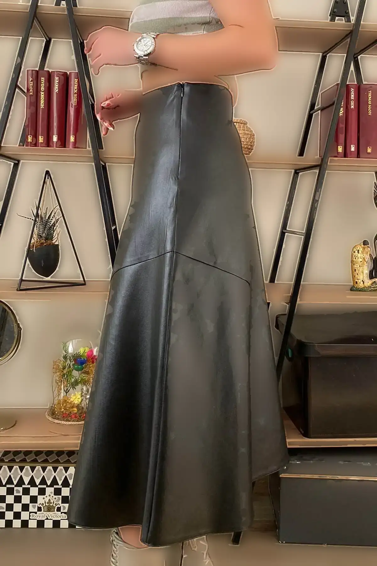دامن چرم زنانه با جزئیات دوخت نامتقارن سوارس – رنگ مشکی – 11224