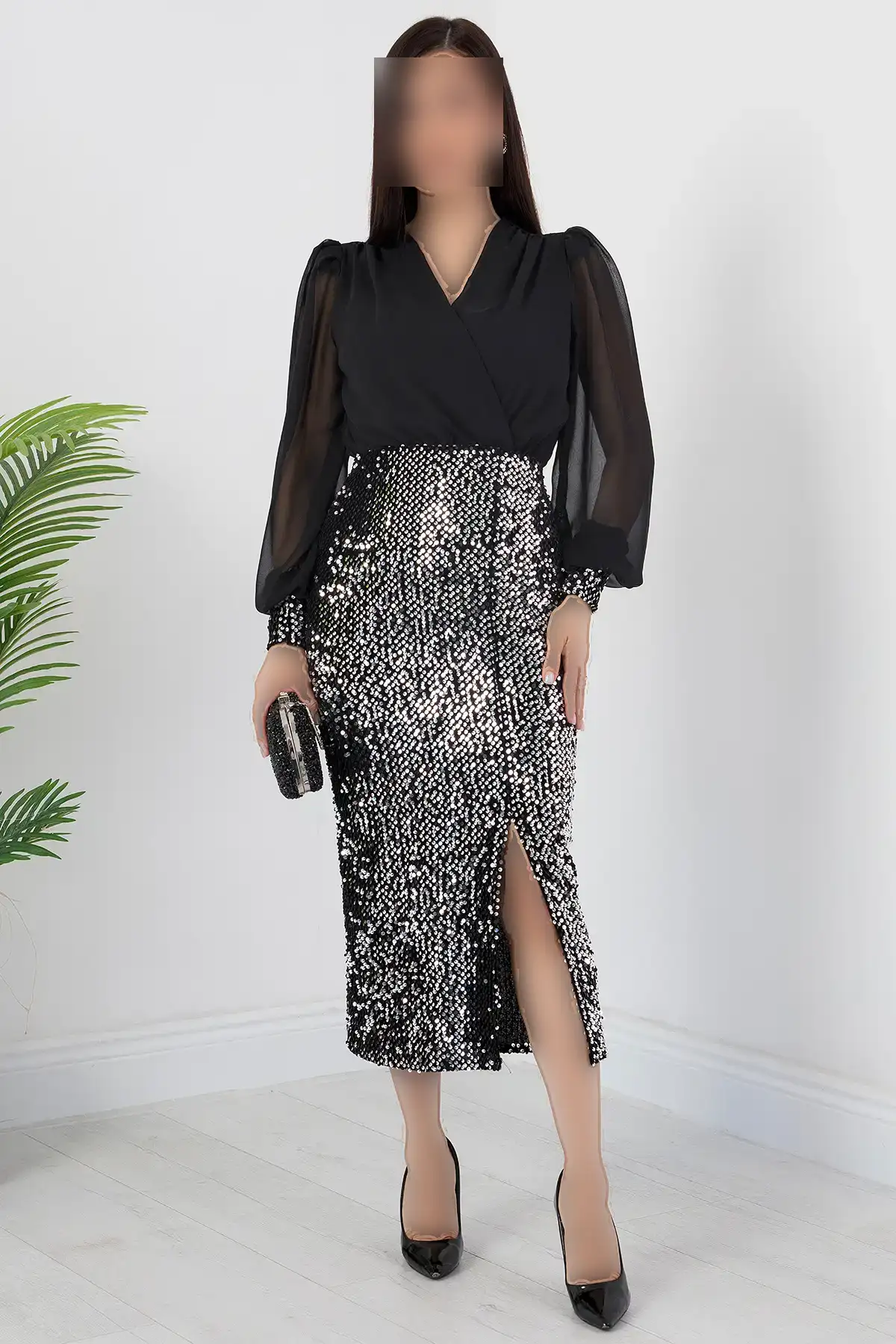 لباس شب بلند ماهی با جزئیات مرواریدی و شلوب خواهد بود. - 11323