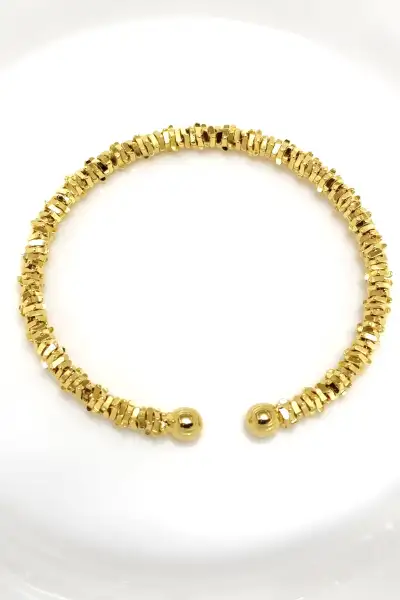 دستبند زنانه لوکس رنگ طلایی از فولاد ضد زنگ نمونهای بینظیر از زیبایی و کیفیت است. این بند با طراحی خاص و جذاب خود، به راحتی توجه هر کسی را جلب میکند.