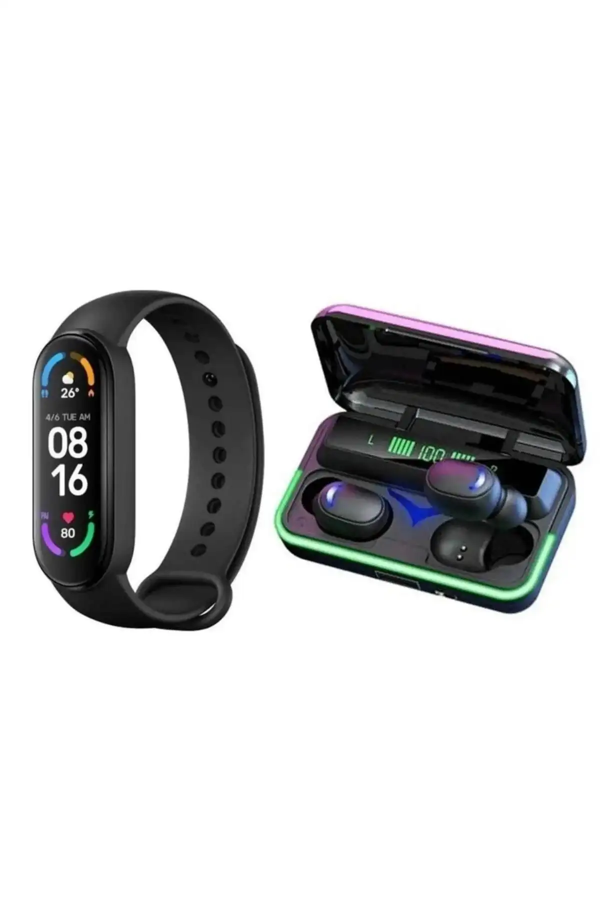 دستبند هوشمند مدل M6 با قابلیت ورزشی و پاوربانک، هدفون بلوتوثی مدل E10 به صورت دو عددی ترکیب – 9916