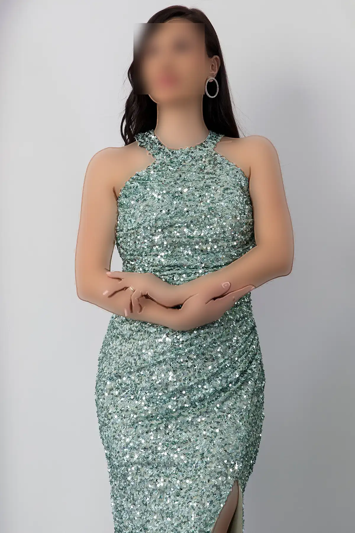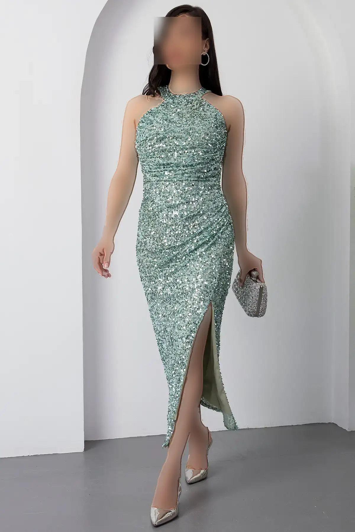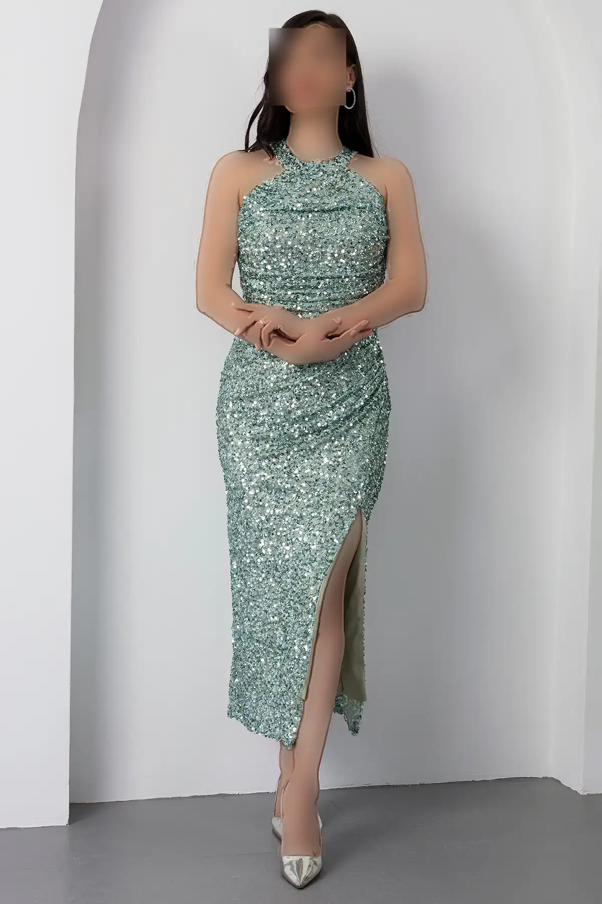 دستdress میدی مجلسی با یقه هالتر و چاک دار BAL143 – 11297