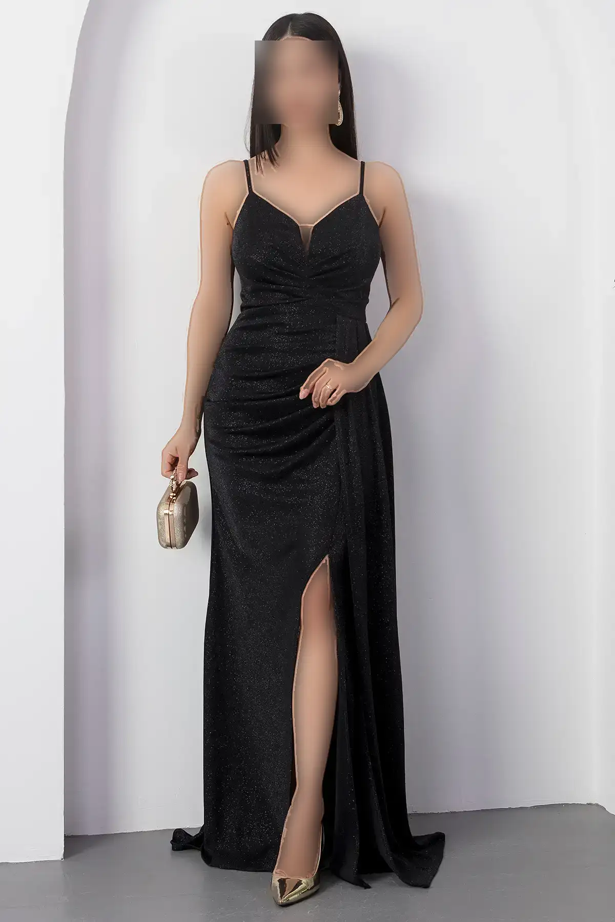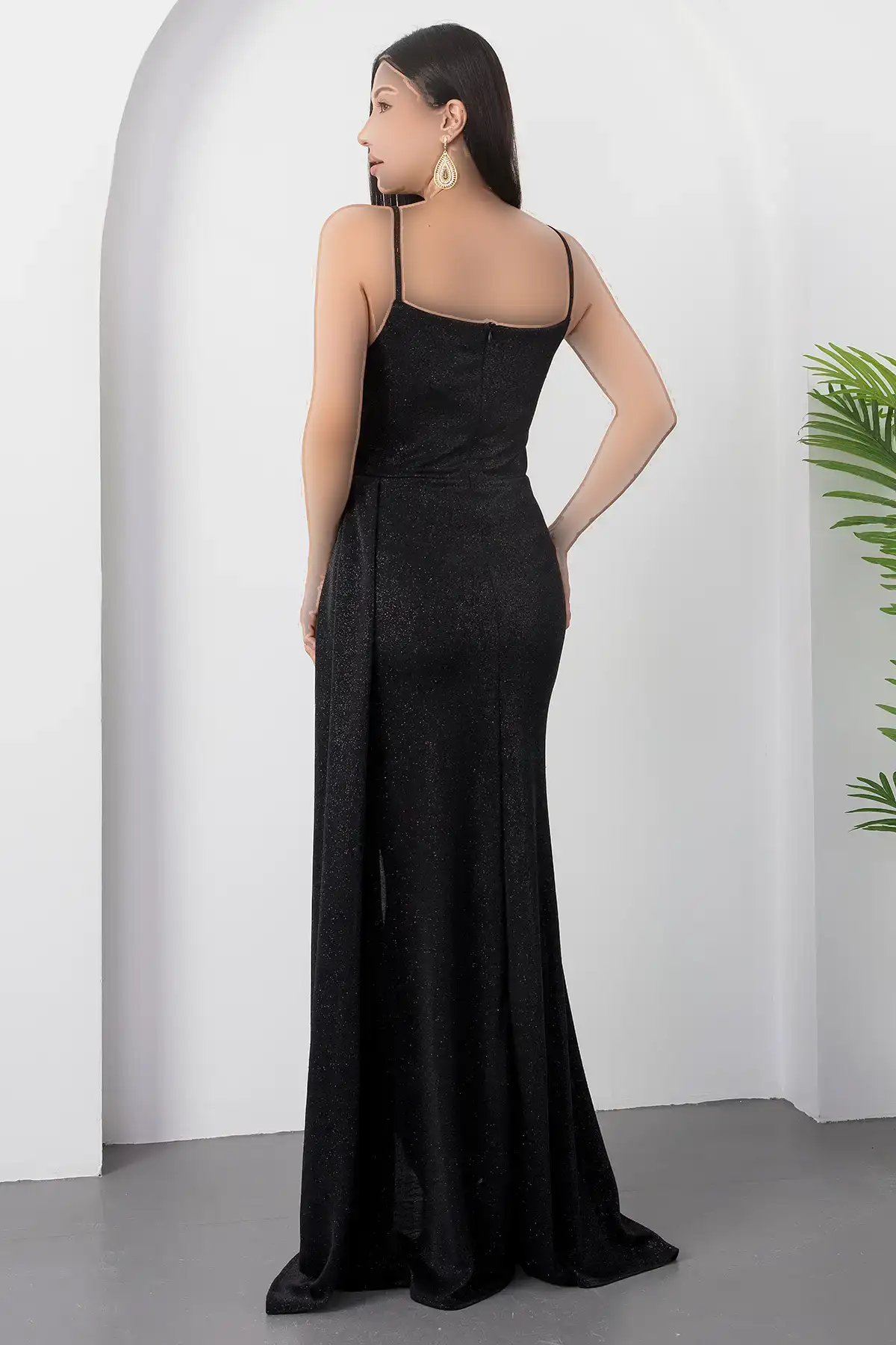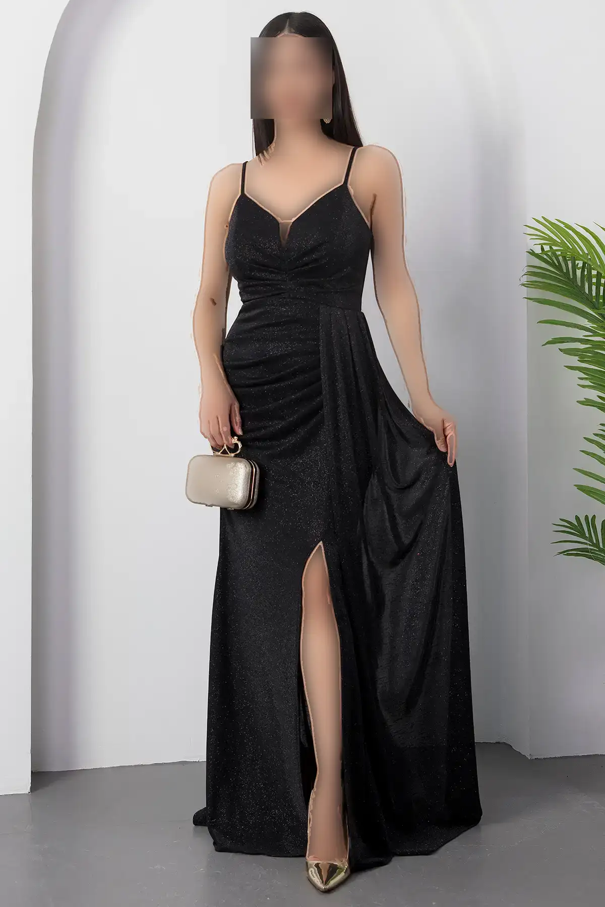 لباس شب زنانه کنفی بلند چیندار و چام دار و با الیاف نقرهای – 11431