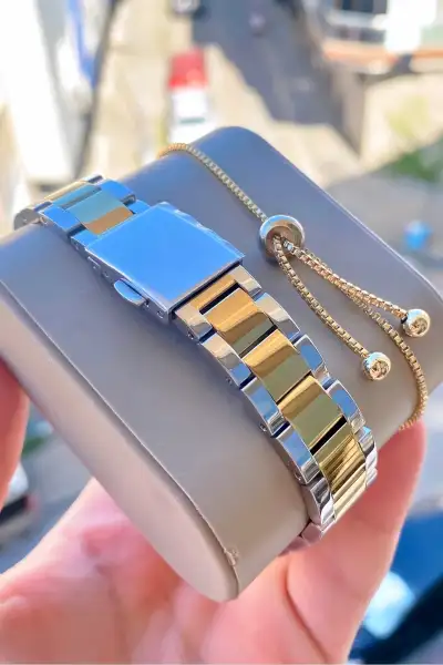 ساعت مچی با دستبند هدیه ضد آب و با ضمانت دو ساله انتخابی عالی برای افرادی است که به دنبال یک ساعت شیک و با کیفیت هستند. این ساعت با طراحی مدرن و جذاب، همواره درخشندگی خاصی را به مچ دست شما میبخشد.این ساعت مچی ساخته شده از مواد با کیفیت شامل فولاد ضد زنگ و شیشه مینرال است. همچنین قابلیت ضد آب بودن تا عمق 3 متر را دارد که به شما امکان میدهد در هر شرایط آب و هوایی از آن استفاده کنید.