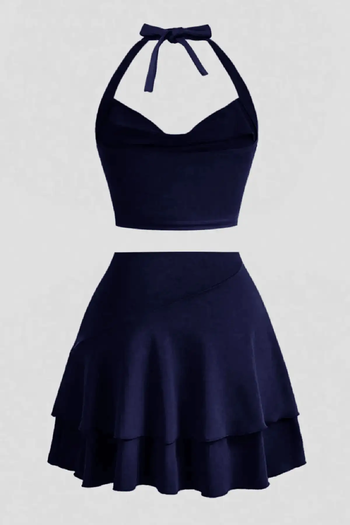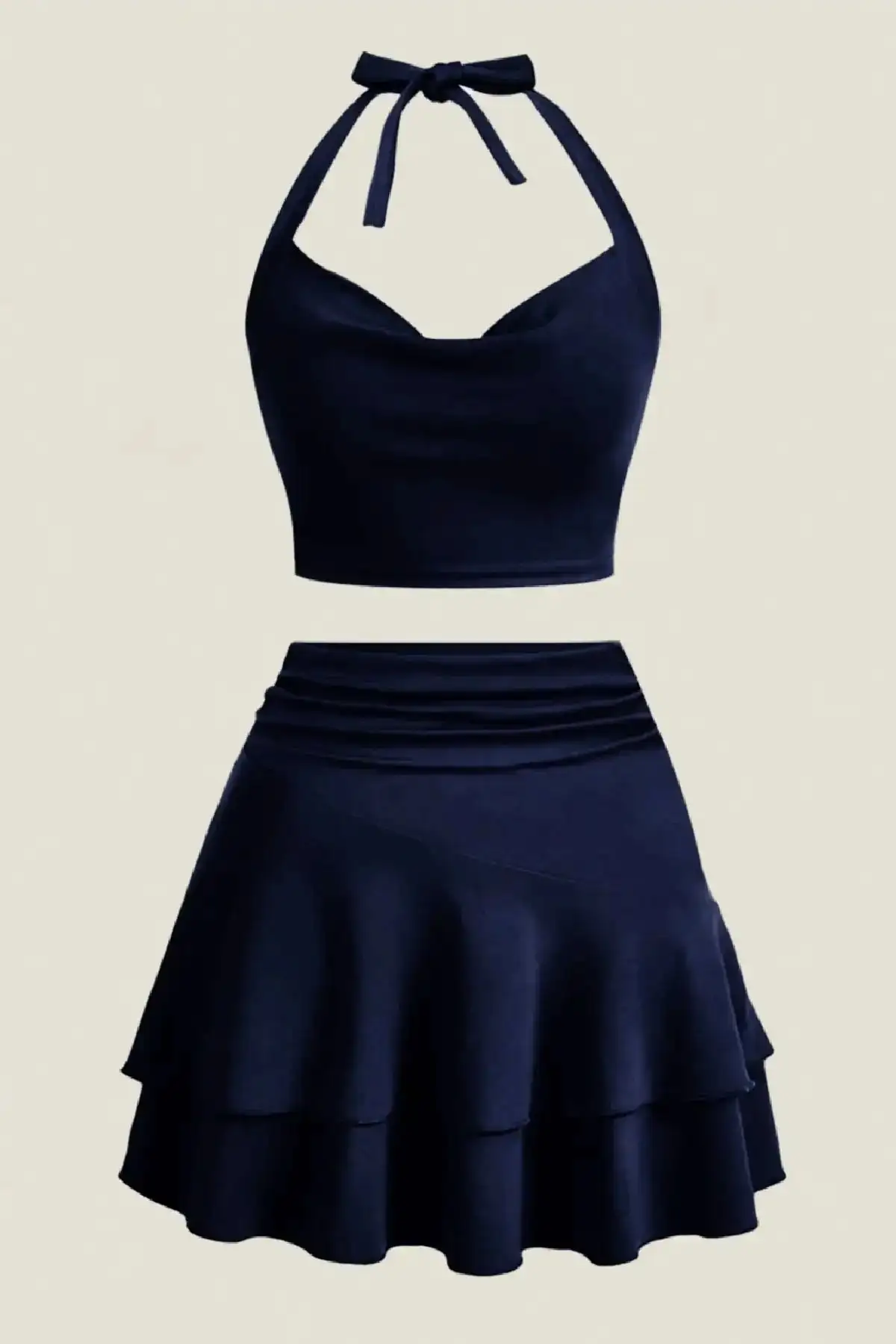 خانه » فروشگاه » ست دامن پفی با بند گردن – 9201