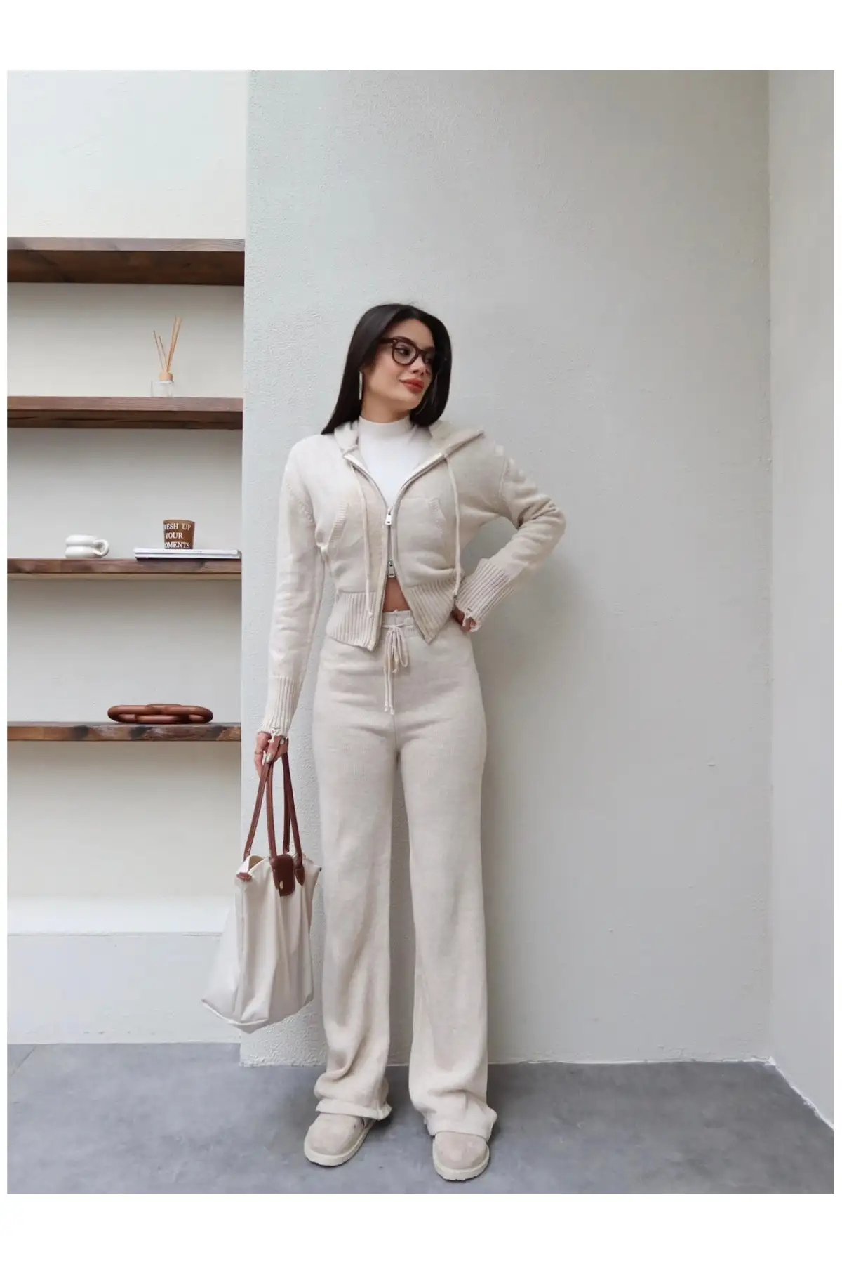 از نظر ظاهری، این ست بافتنی قابلیت این را دارد که شما را همیشه شیک و مدرن به نمایش بگذارد. با انتخاب رنگ کرمی، چهرهای دلنشین به شما خواهد داد.