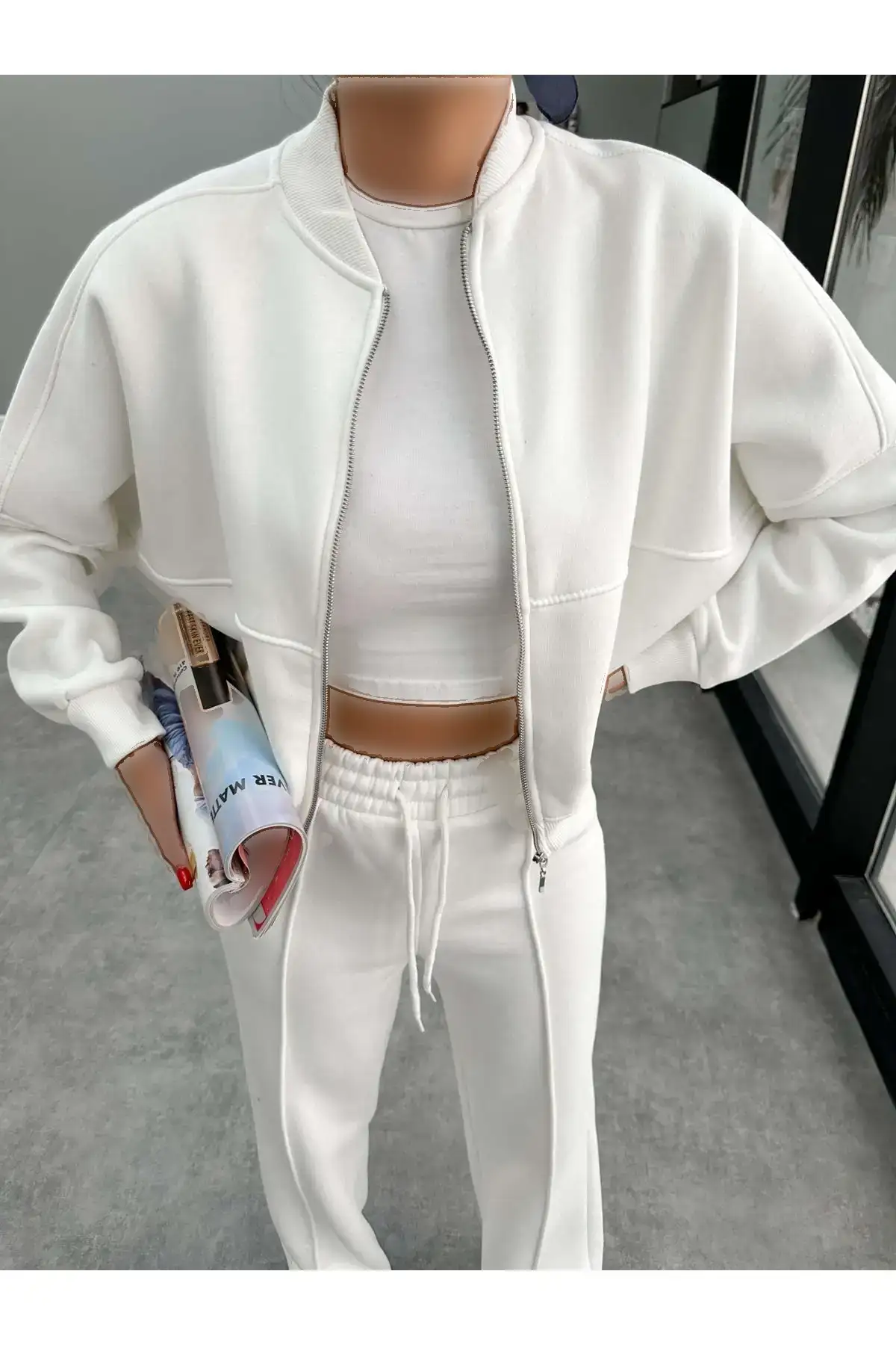 نوع آستین بلند این ست باعث شده تا در فصول سرد سال نیز بتوانید از آن استفاده کنید. همچنین، وجود زیپ در طراحی آن، به زیبایی و راحتی بیشتر آن افزوده است.