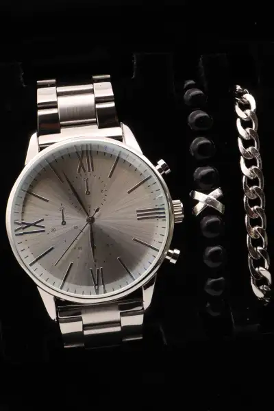 ست ساعت مردانه فلزی فندک خاص و دستبند و تسبیح – 13547