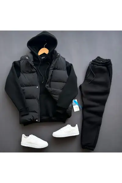 ست سویشرت و شلوار 3 تکه مردانه با جلیقه بادی با پارچه نرم و پفی – 13536