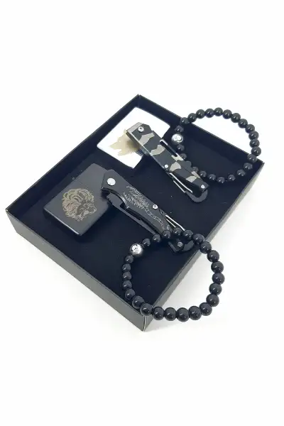 ست هدیه ۶ تکه چاقوی دستبند و فندک بنزینی – 13553