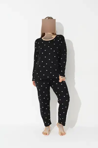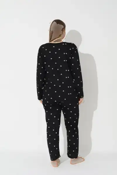 ست پیژامه پنبهای سایز بزرگ زنانه طراحی شده با الگوی قلب مشکی – 12471