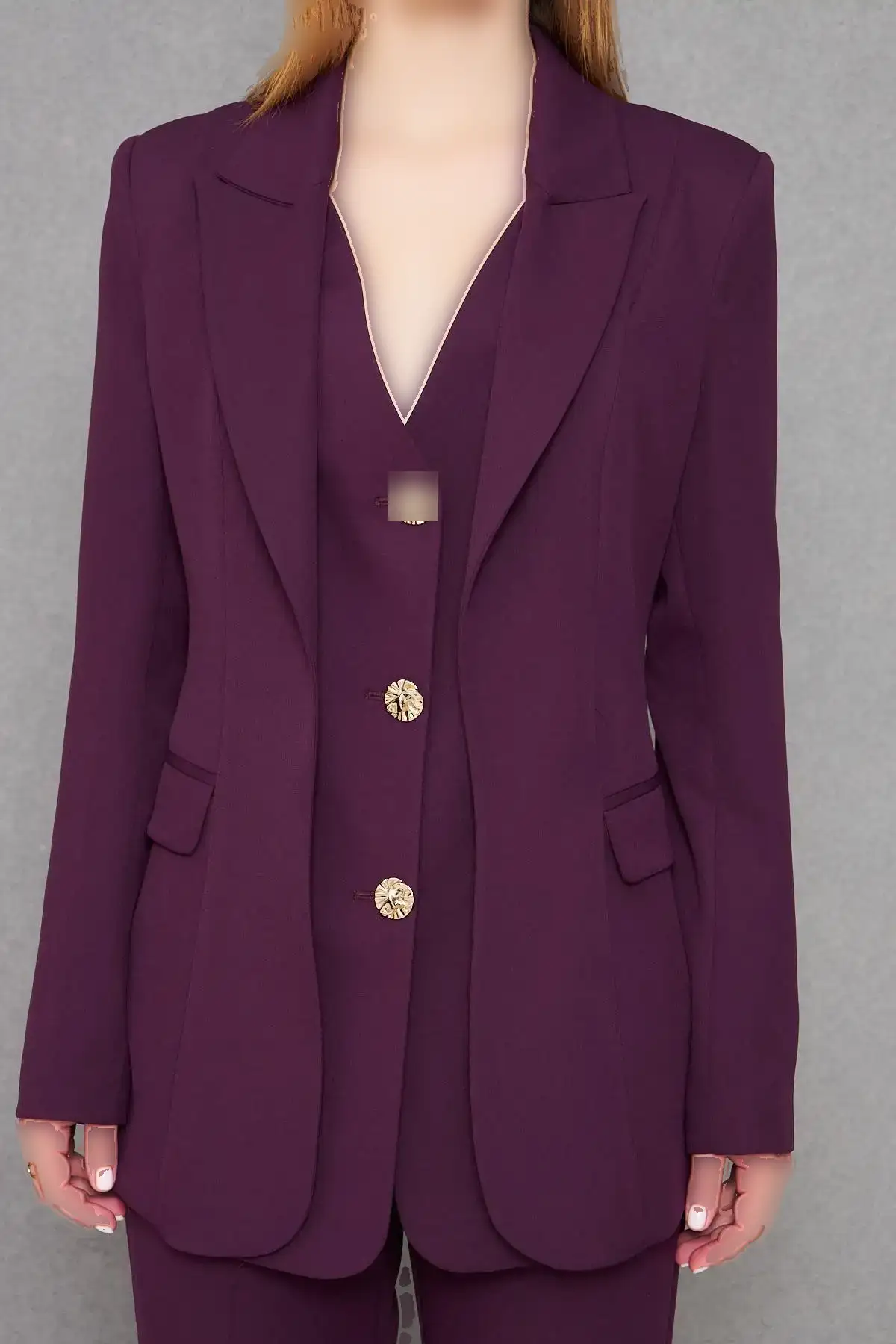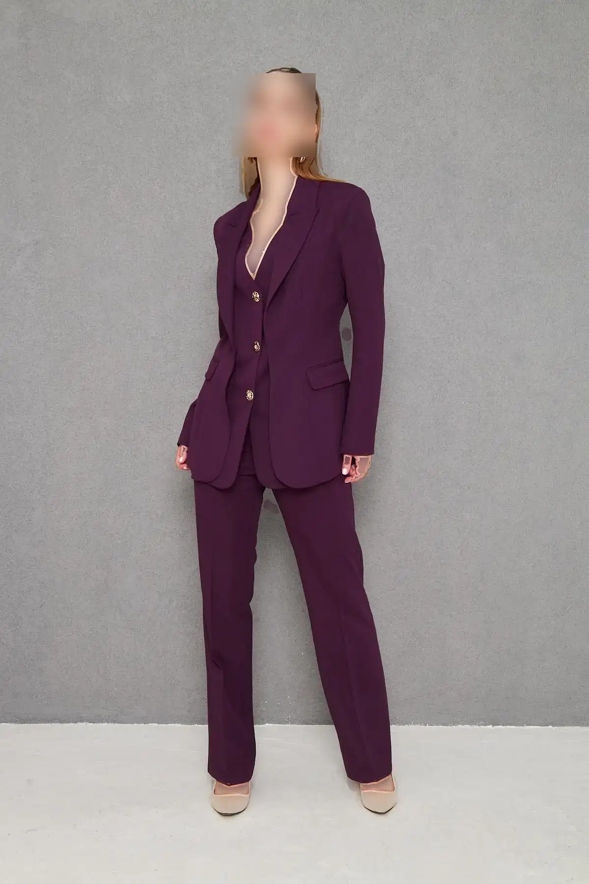 ست کت شلوار زنانه ۳ دکمهای به زیبایی و شیک بودن شما اضافه میکند. این محصول با توجه به استفاده از متریال باکیفیت، اطمینان میدهد که شما در هر موقعیتی راحت و خوشاستایل خواهید بود.