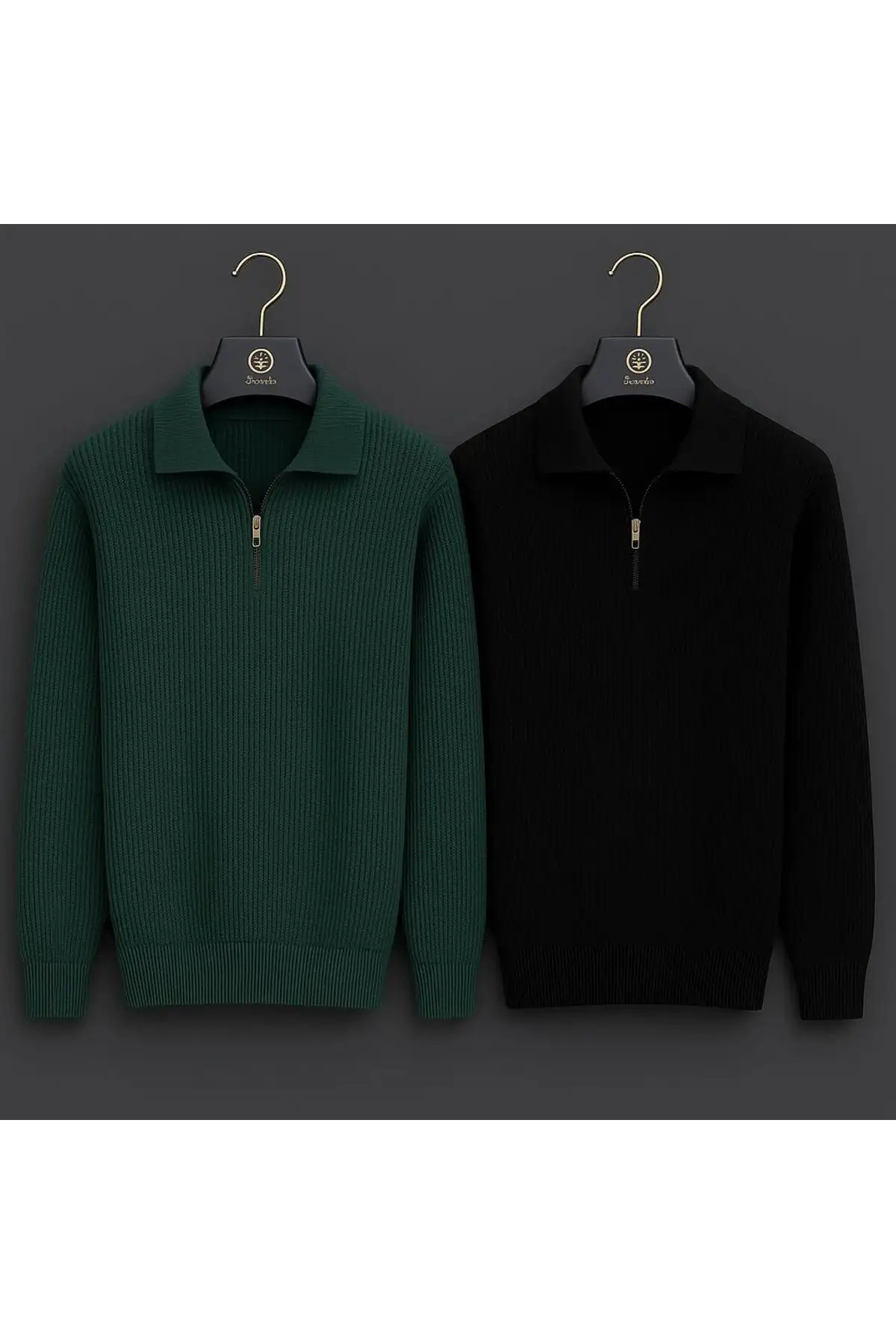 ست ۲ عددی ژاکت بافتنی مردانه ترک با یقه و زیپ – 11485