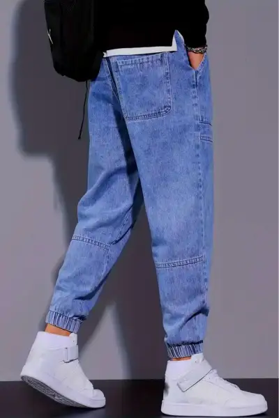 شلوار جین مردانه کمر کشی با بند و برش جاگر – 13379