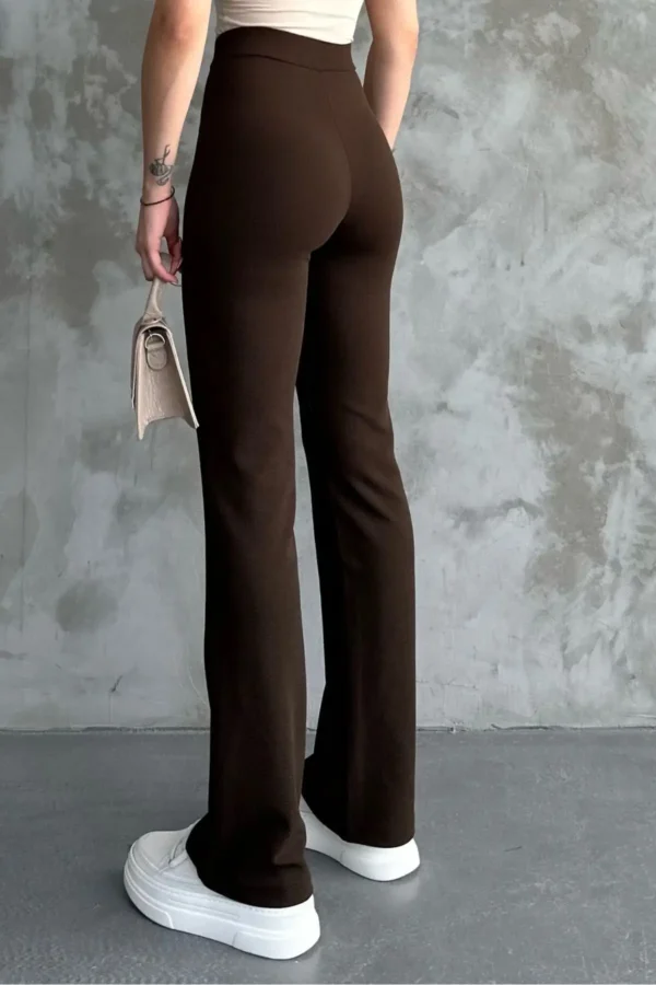 شلوار کمر بلند قهوه زنان شلوار اسپانیایی Paça Palazzo – 2827