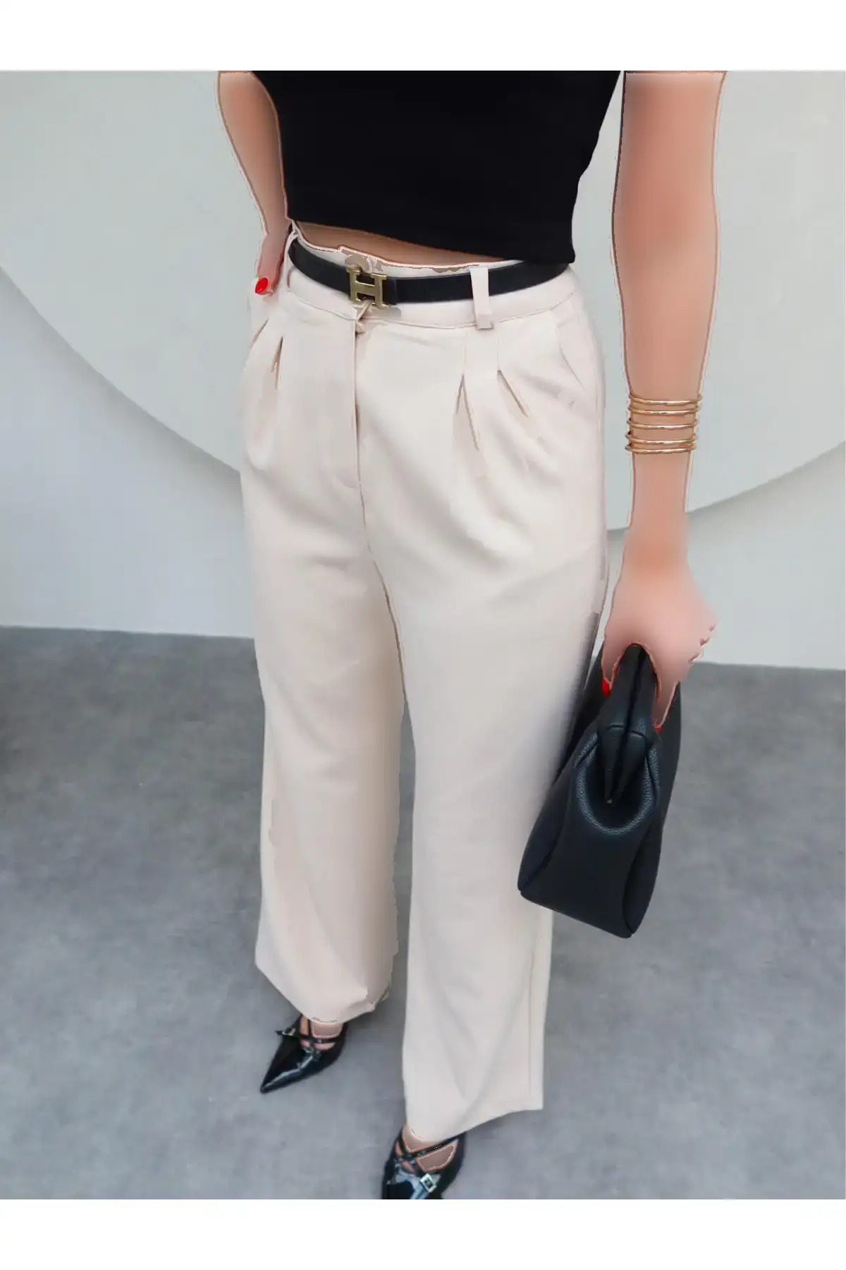 همچنین، شلوار Palazzo به دلیل طراحی خاص خود، میتواند به راحتی همراه با انواع کفشها، از جمله کفشهای پاشنهدار یا کتانی، ست شود و استایل شما را کامل کند.