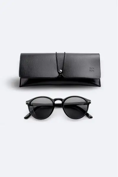 عینک آفتابی گرد مشکی فریم دار مردانه پلاریزه – 13487