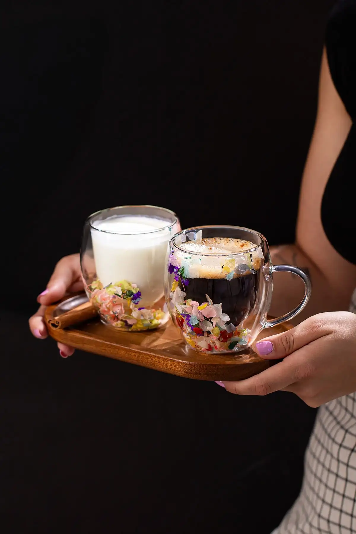 فنجان چای و قهوه شیشهای دو جداره با دسته عایق حرارتی ۲ عددی ۲۵۰ میلیلیتر – 10326