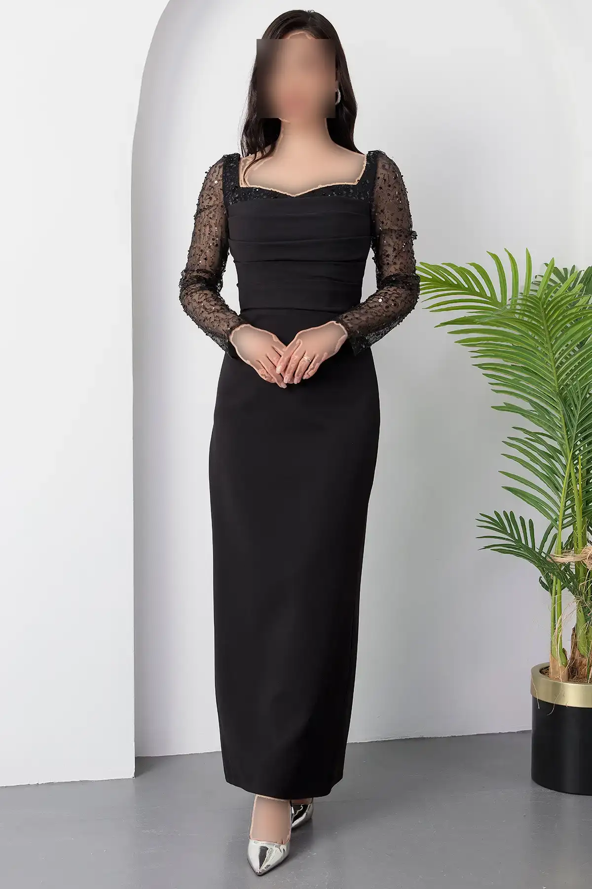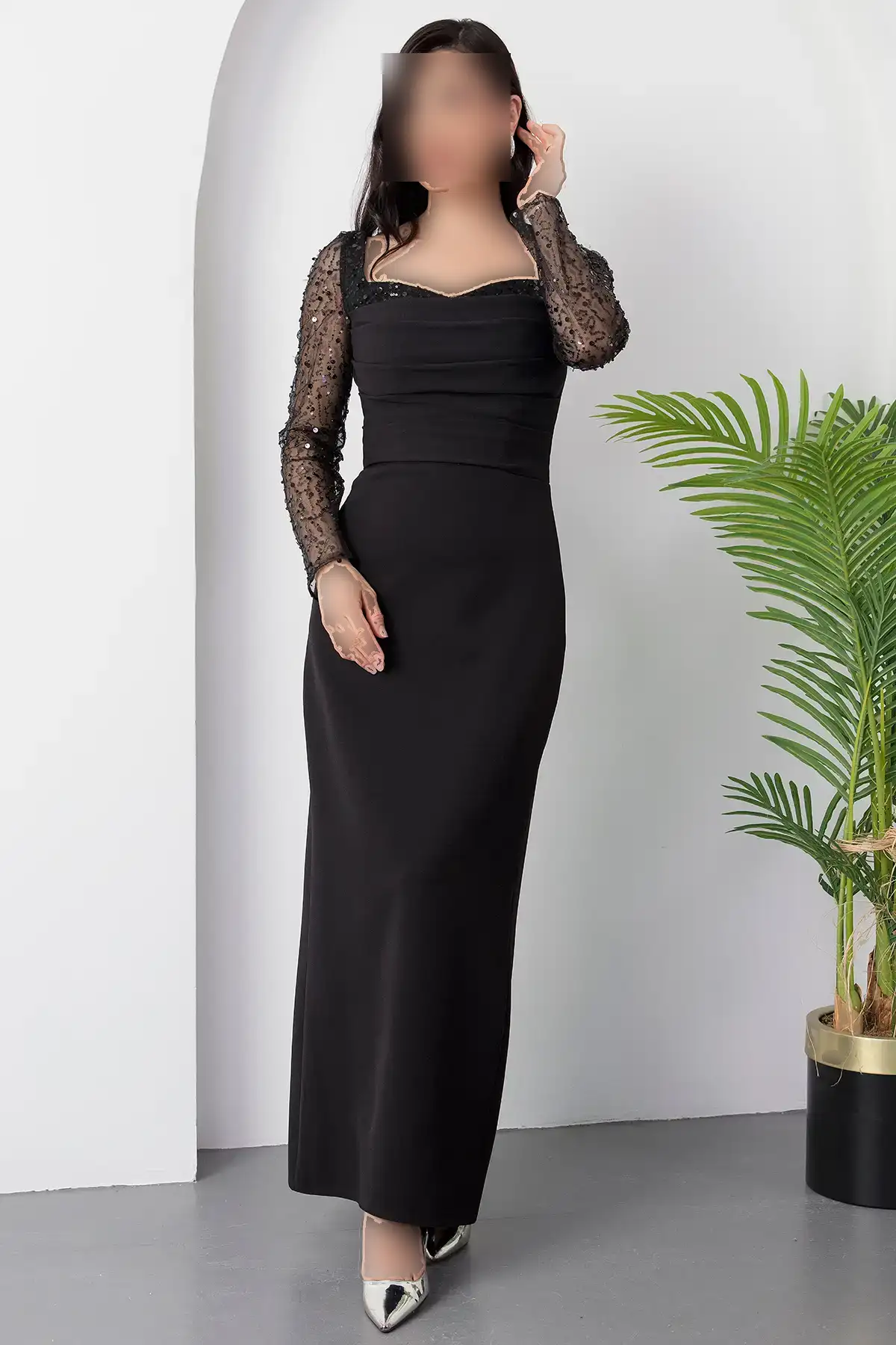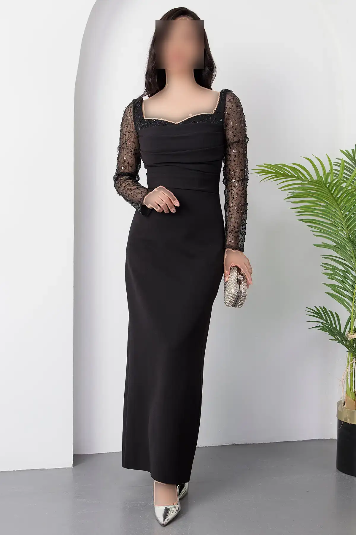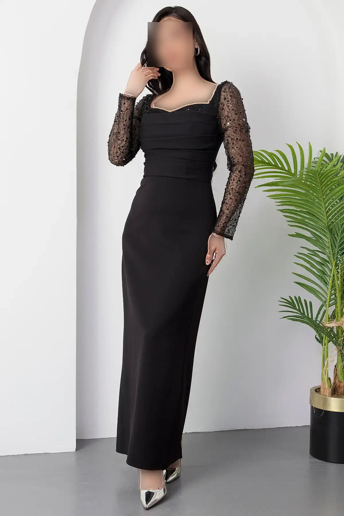 لباس شب با آستین کلوش و طرح جرقهای 39925 - 11288