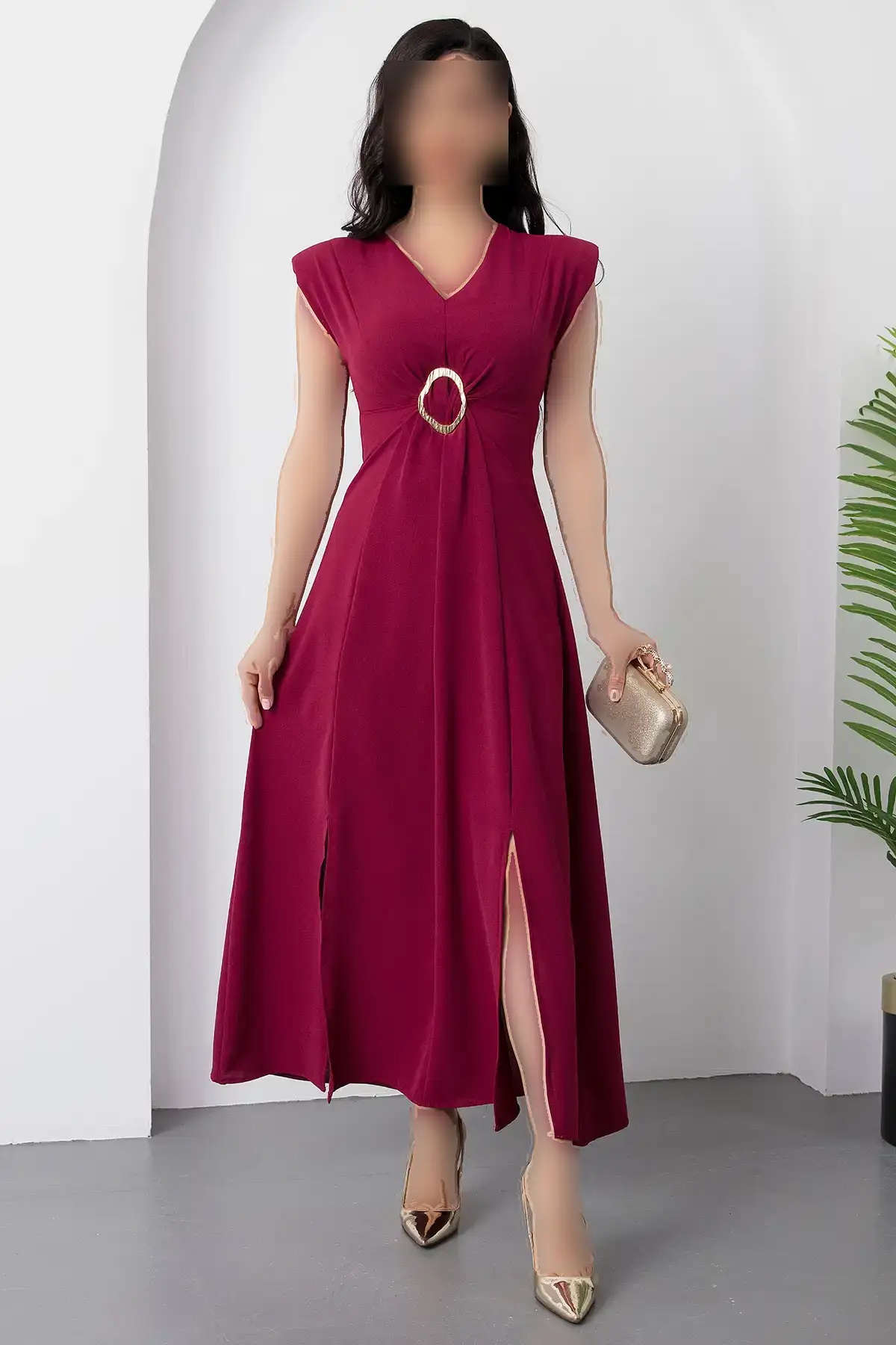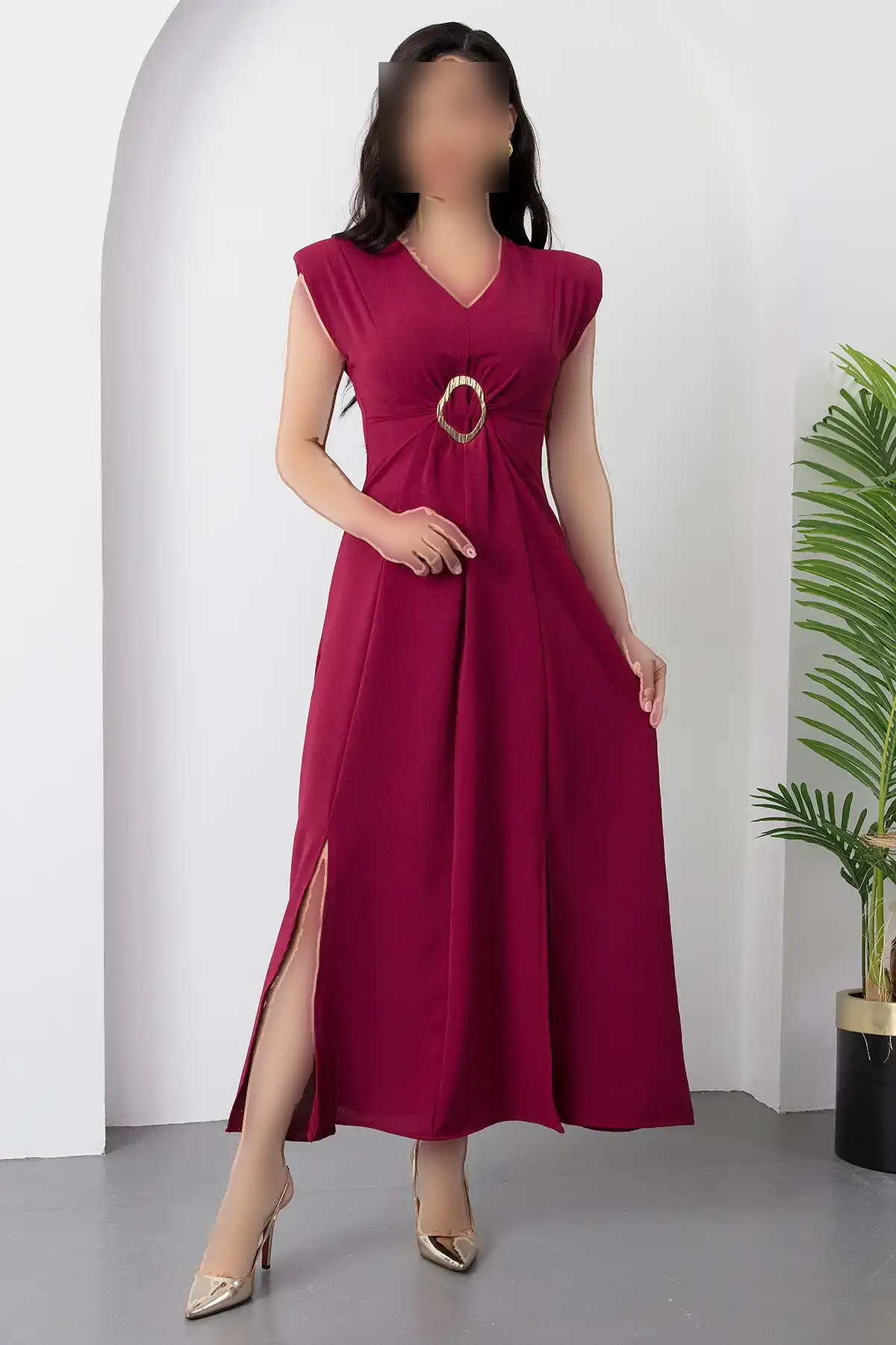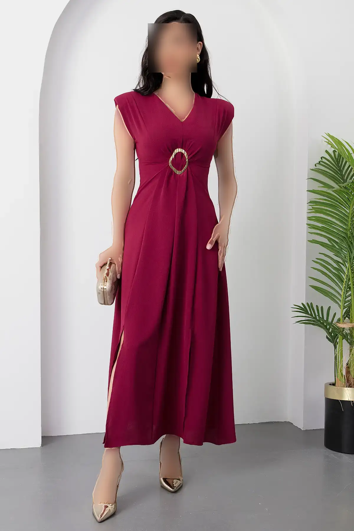 این لباس زیبا و مدرن با طراحی خاص خود، توجه هر کسی را جلب می‌کند. یقه V عمیق و جزئیات قلاب فلزی، زیبایی و جذابیت منحصر به فردی به لباسی که پوشیده‌اید می‌بخشد.