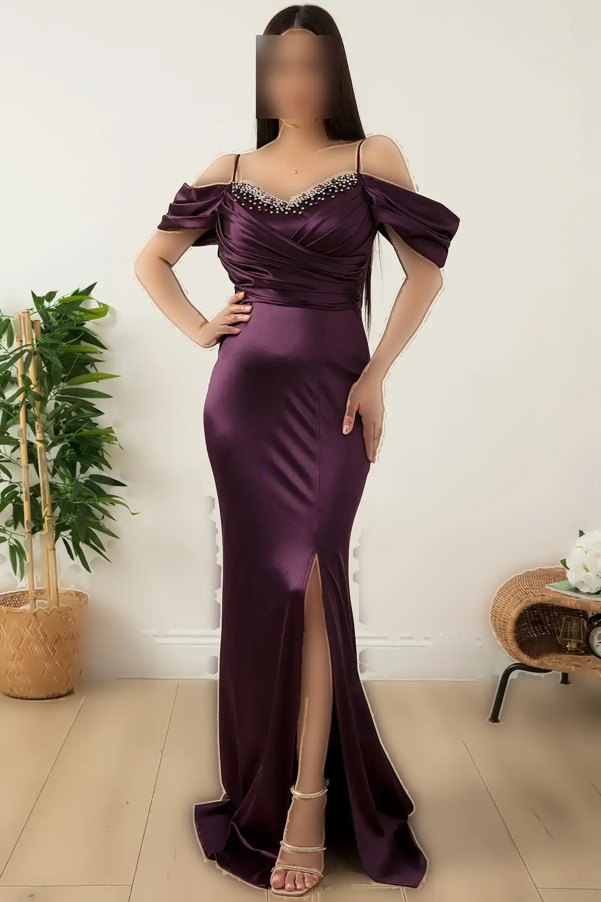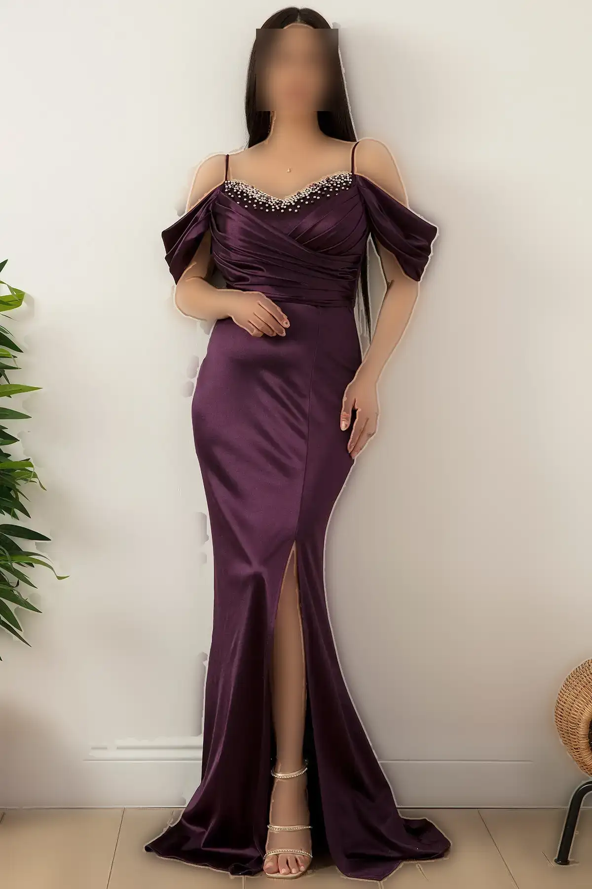 لباس آستین‌دار ساتن با رنگ بنفش خاصی طراحی شده که به راحتی می‌تواند در مناسبت‌های مختلف مورد استفاده قرار گیرد. این رنگ علاوه بر زیبایی، جذابیت خاصی به طراحی لباس می‌بخشد.