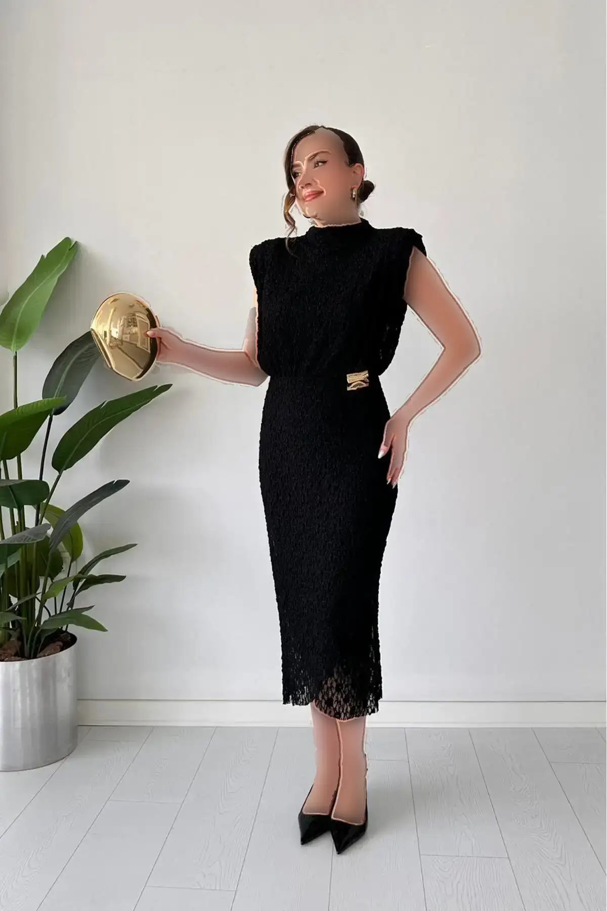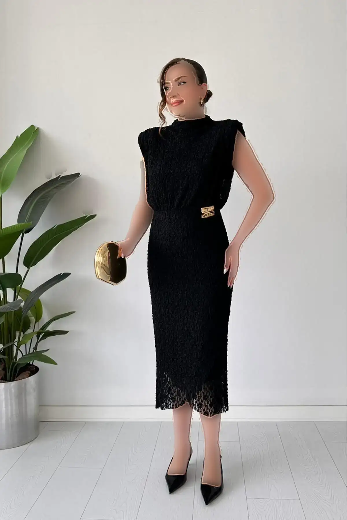 لباس مجلسی زنانه ترک اورجینال توری مشکی – 11987
