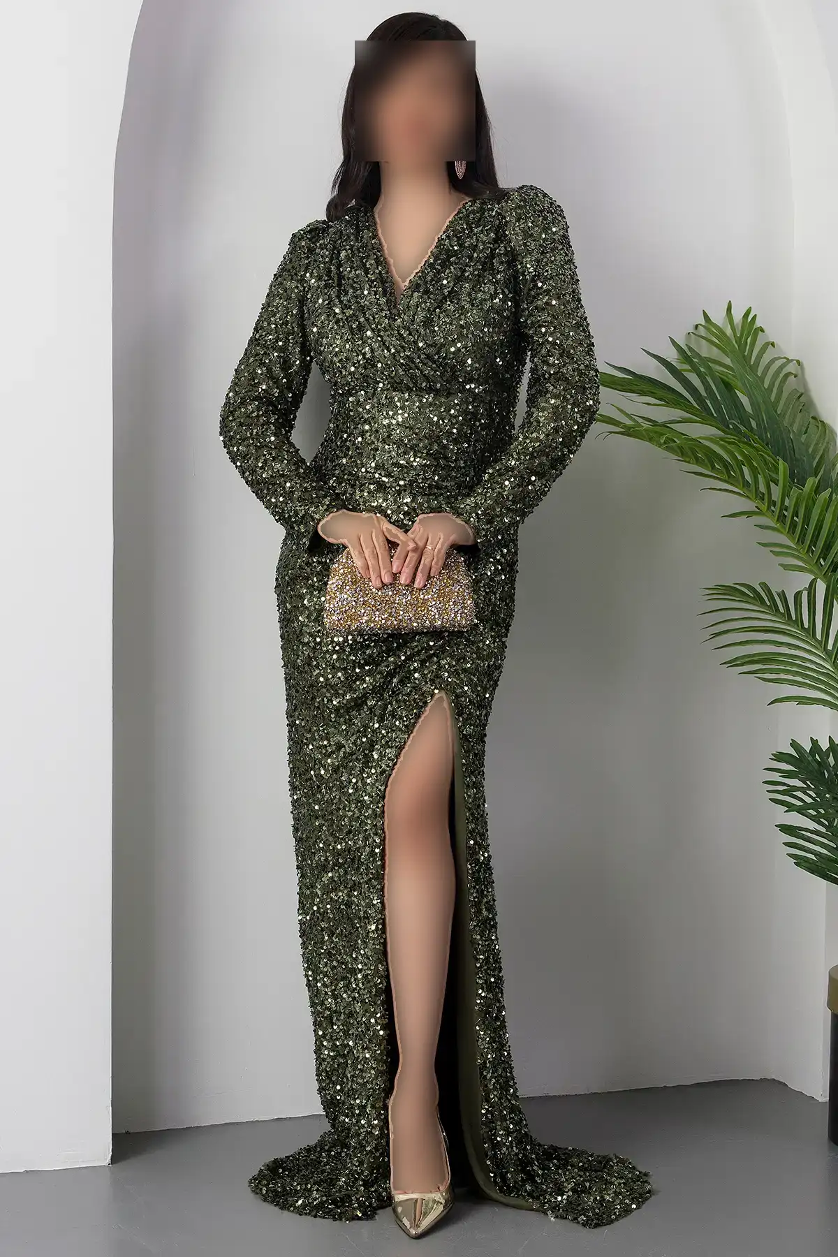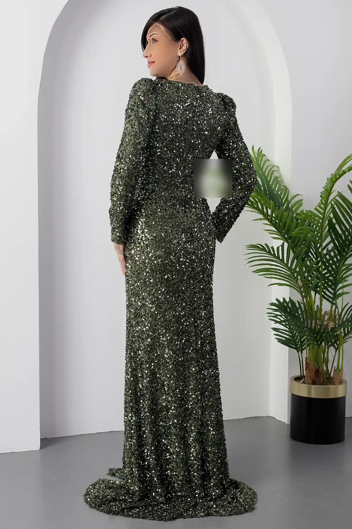لباس شب زنانه چسبان آستین بلند ترک – 11444