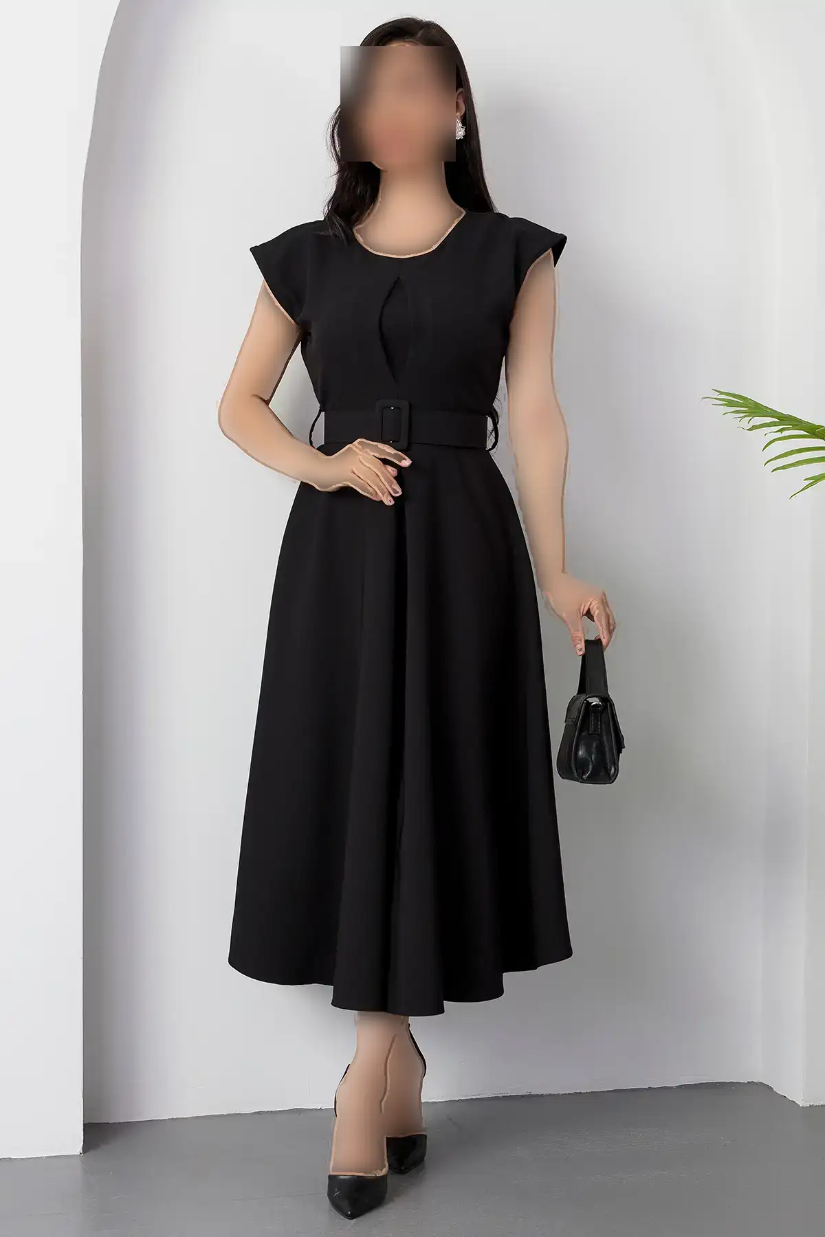 آستینهای کوتاه این مدل، به همراه یقهگرد، ظاهری زیبا و مدرن به آن میبخشد. این لباس کاملاً متناسب با فصلهای مختلف است و میتوان آن را در مهمانیها، مراسمها و حتی روزمره پوشید.