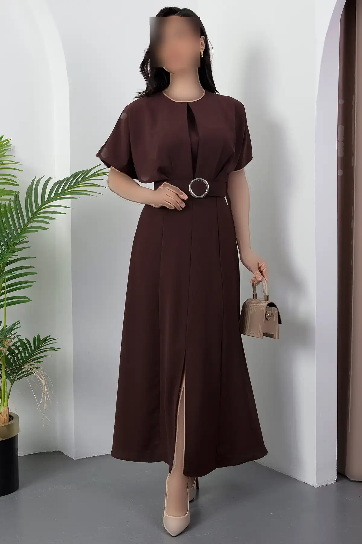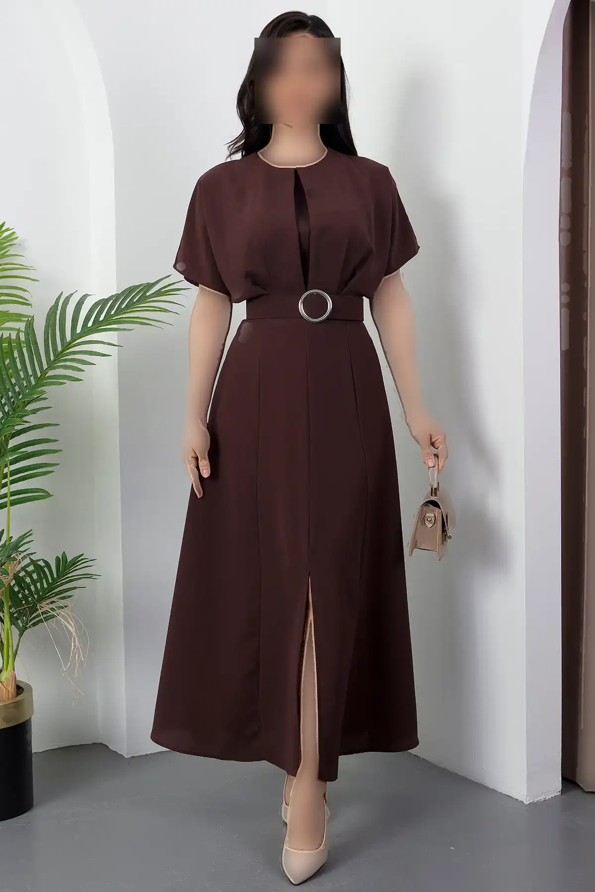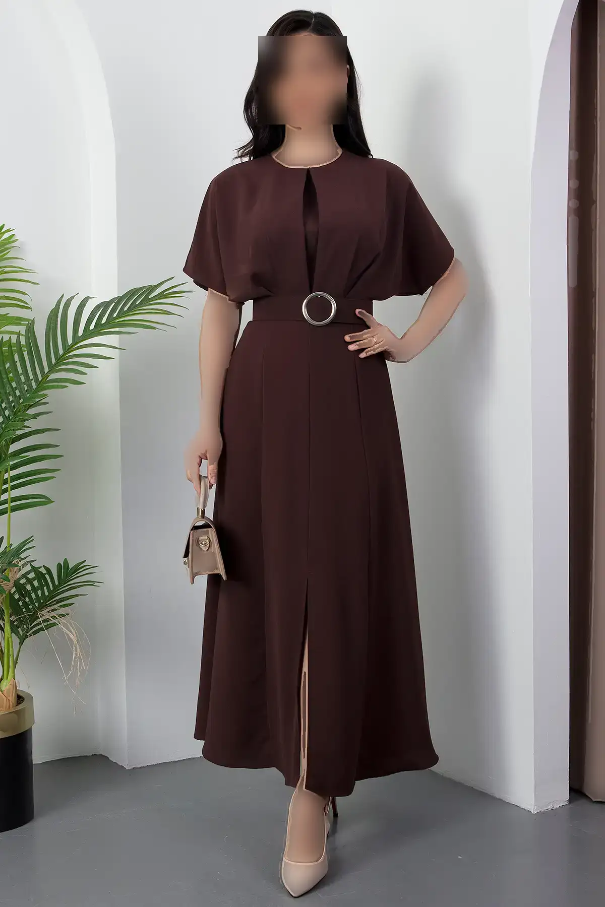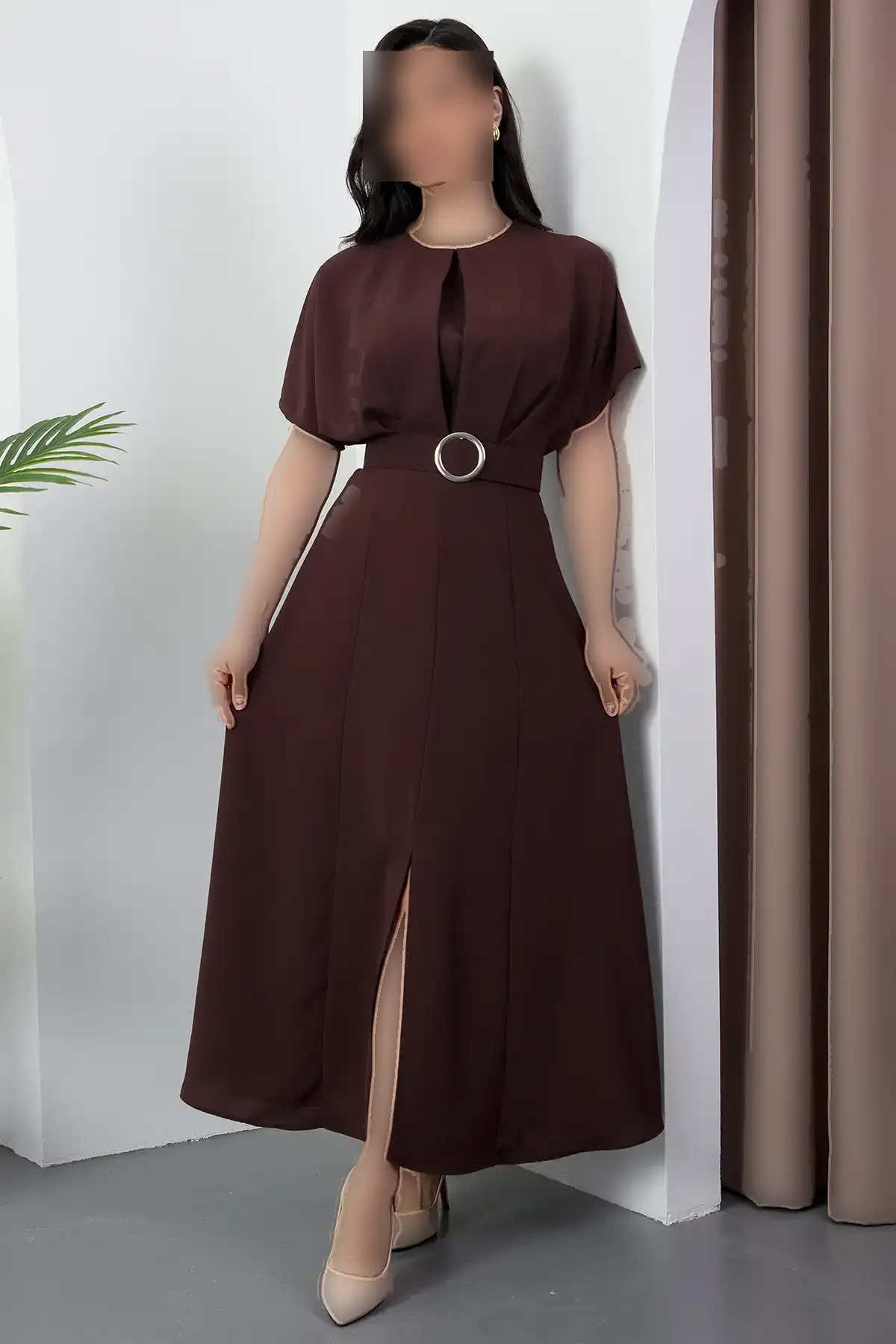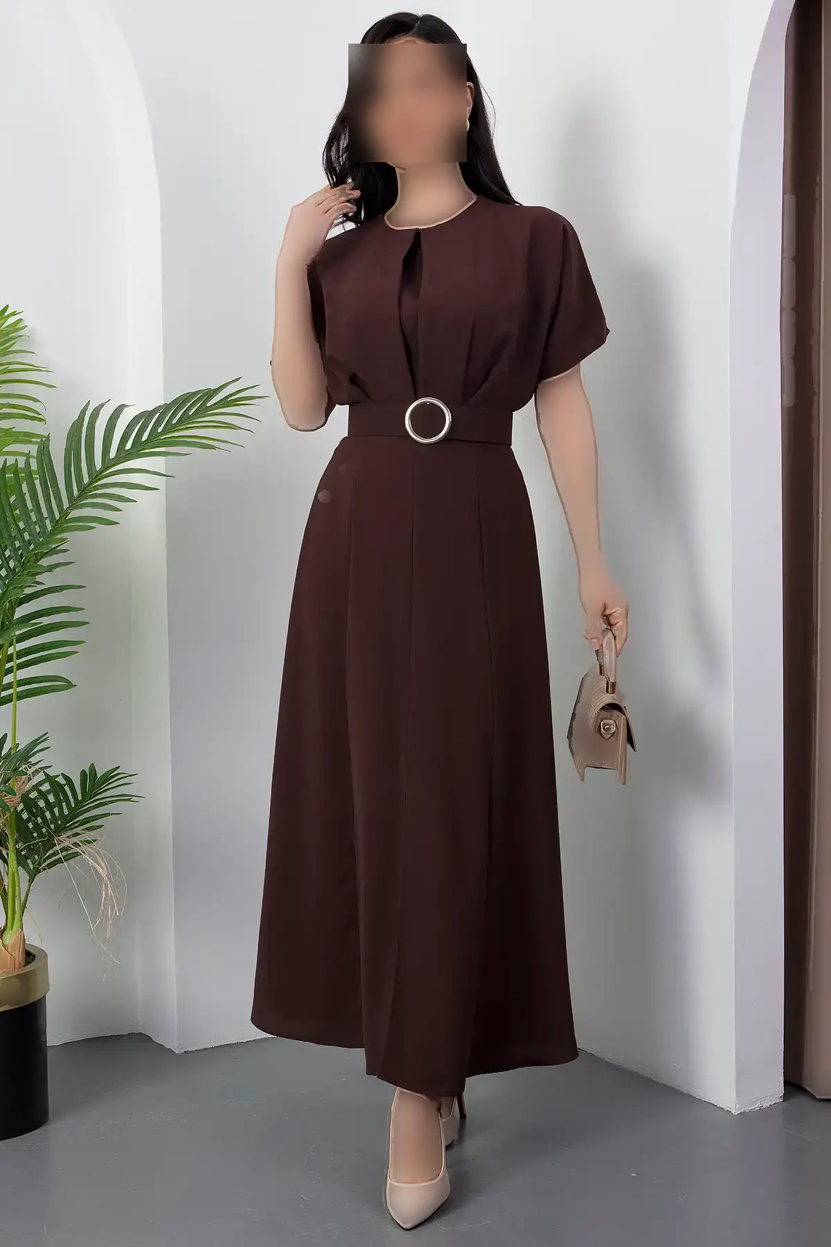 لباس کمر دار آستین جاپونی با یقه دوچرخه‌ای DKS1055 – 11403