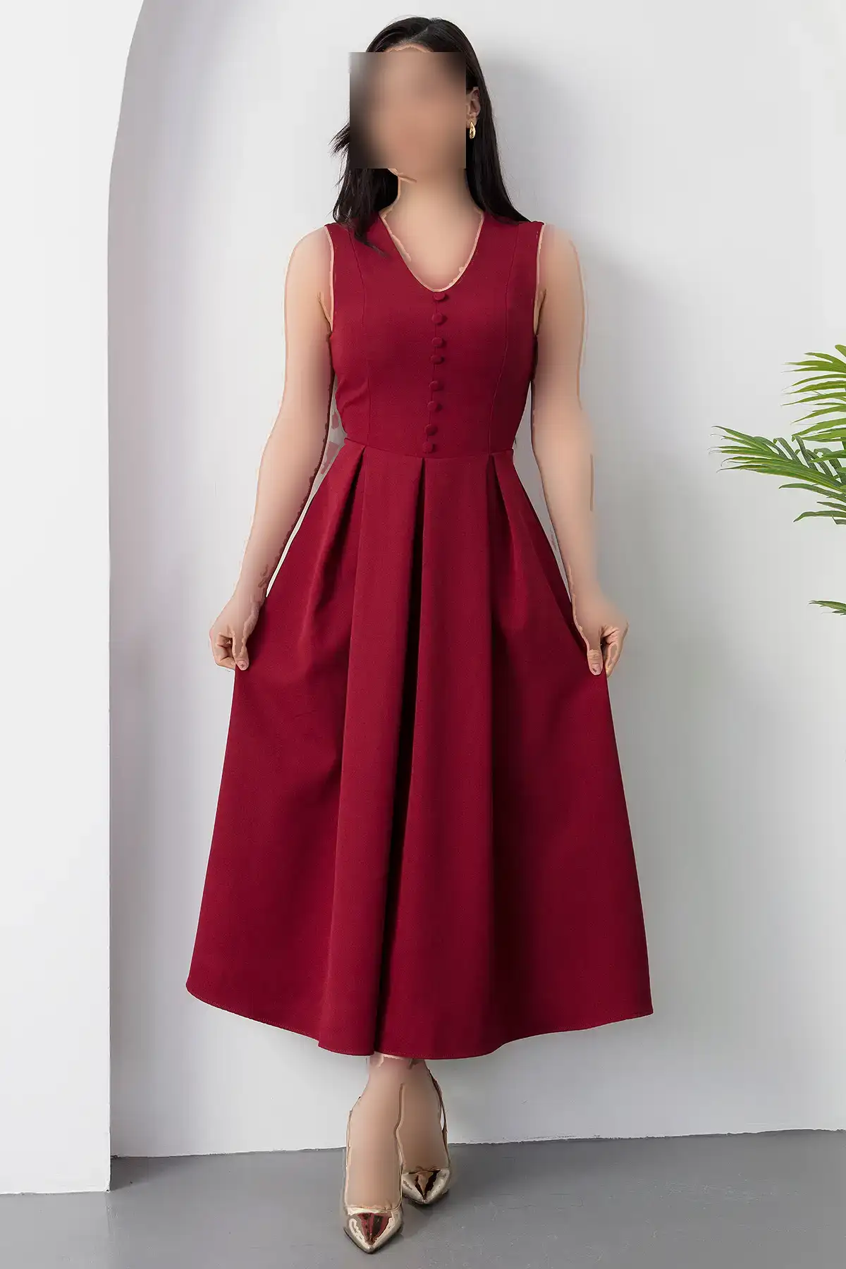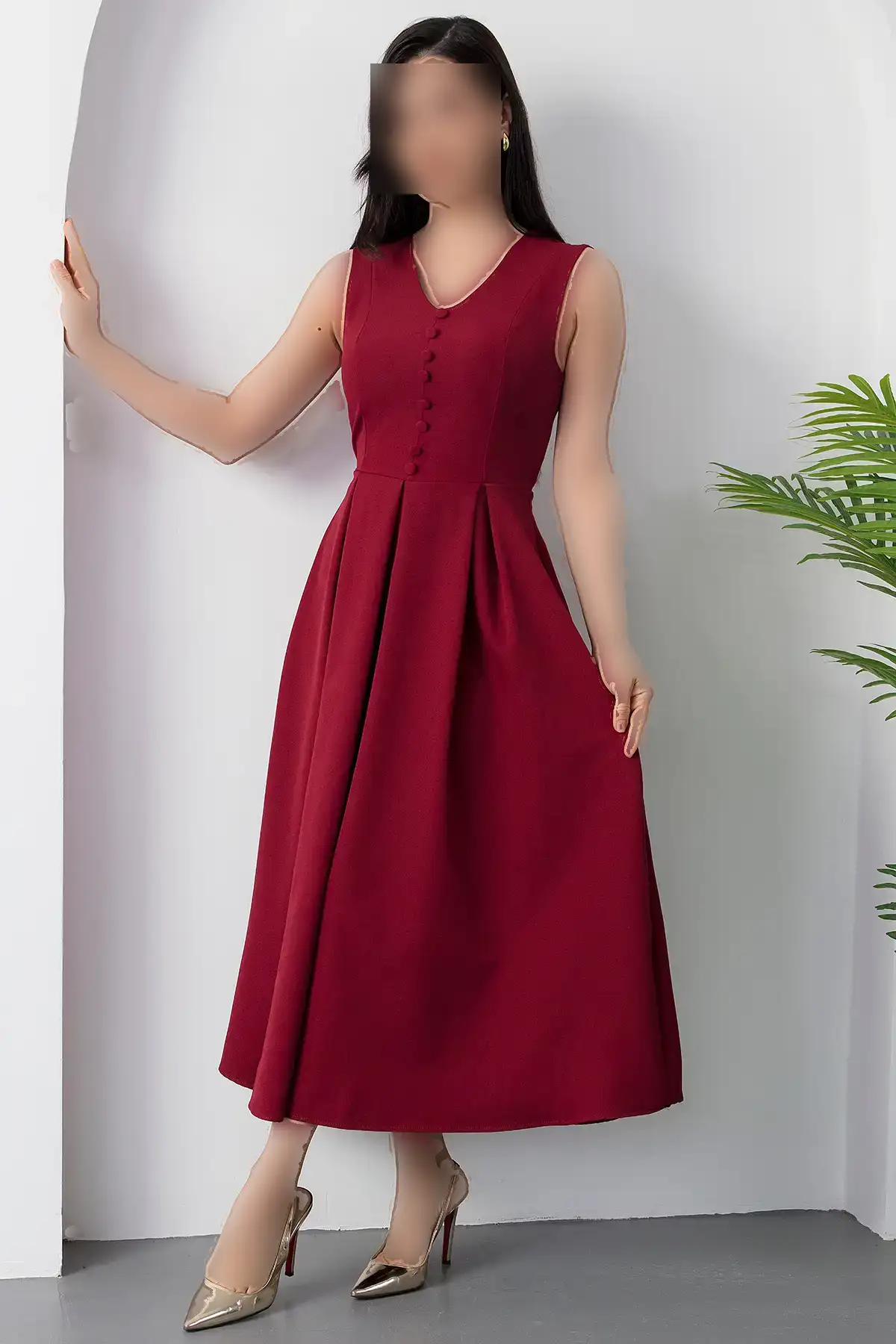 این لباس یقه V دکمهدار با طراحی خاص و زیبا مناسب برای هر مناسبت و روزمرگی است.