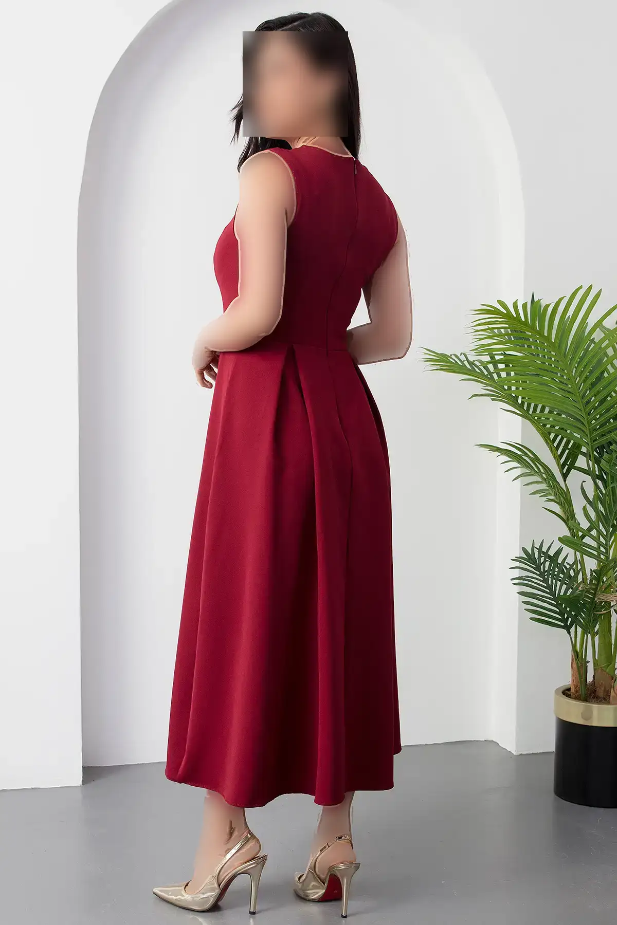 پیراهن زنانه منجوق برش کوتاه شانه آجری زنانه ELB-19002039 – 1366