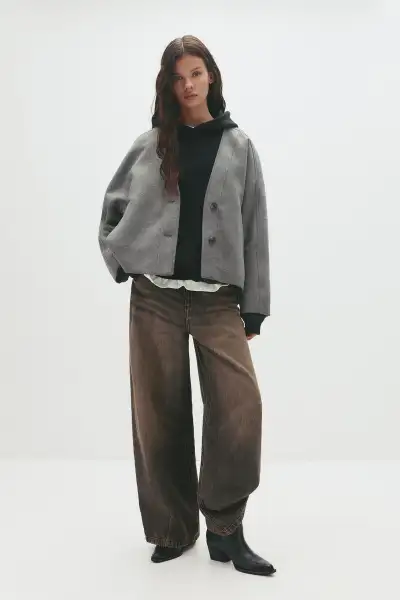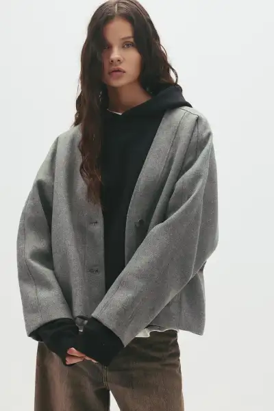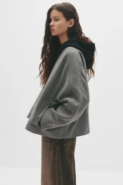 پالتو پشمی کوتاه زنانه ترند سال 2026 از برند مشهور Pull & Bear ساخته شده است. طراحی این پالتو به گونهای است که میتواند در فصلهای سرد سال، شما را گرم نگه دارد.پالتو بافندهای که از الیاف طبیعی ساخته شده، بهترین انتخاب برای روزهای خنک پاییزی و زمستانی است. ترکیب بافت و استحکام آن، باعث میشود این پالتو عمر طولانیتری داشته باشد.این پالتو پشمی کوتاه زنانه ترند سال 2026 همچنین در رنگ خاکستری موجود است که با بسیاری از لباسها و کفشها قابل ست کردن است. به همین دلیل میتوانید با خیال راحت آن را با دیگر پوشاک خود هماهنگ کنید.