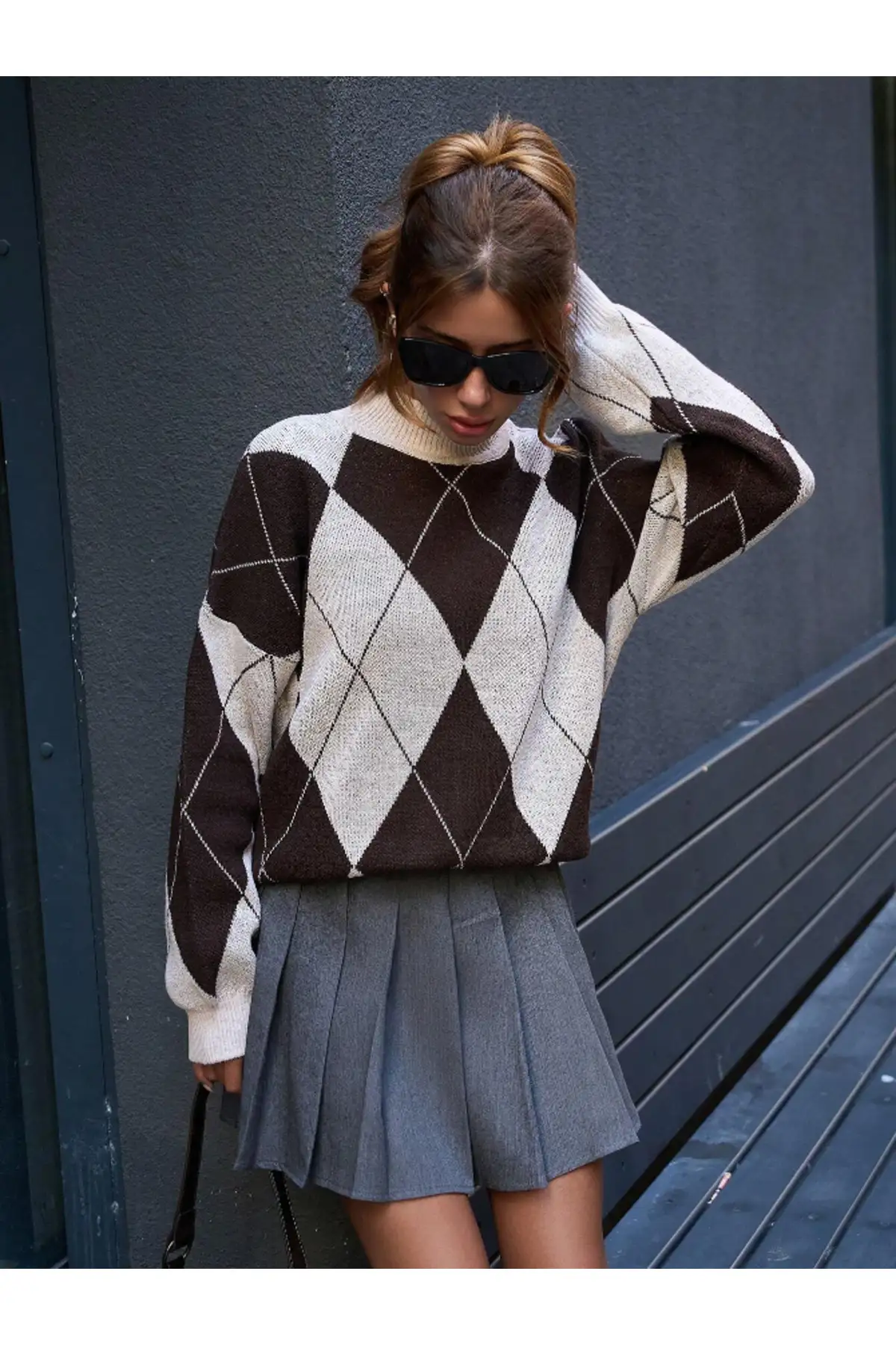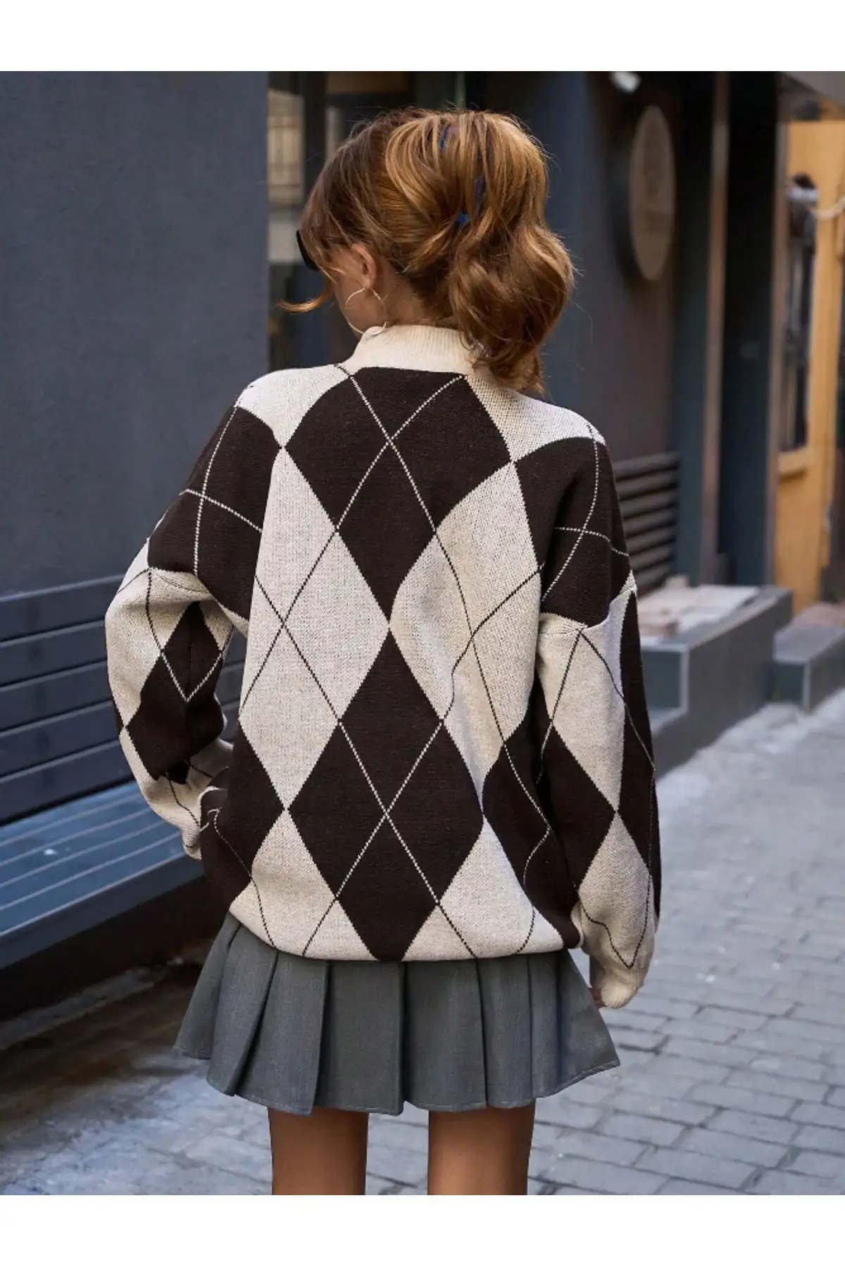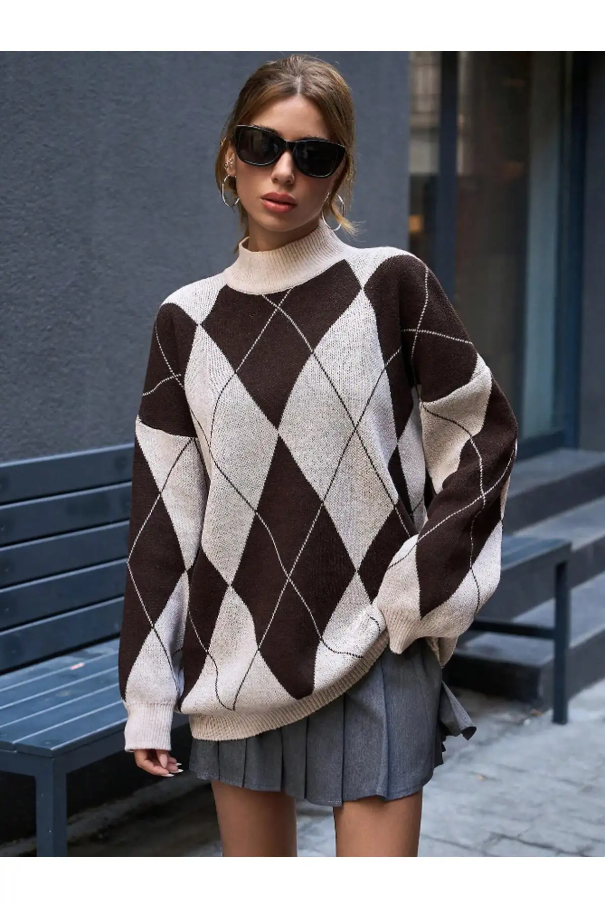 پلیور بافتنی یقه ایستاده طرح جدید ترک