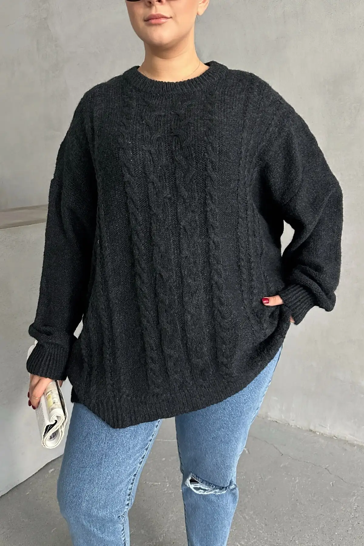 پلیور با یقه گرد و آستین بلند سایز بزرگ – 11065