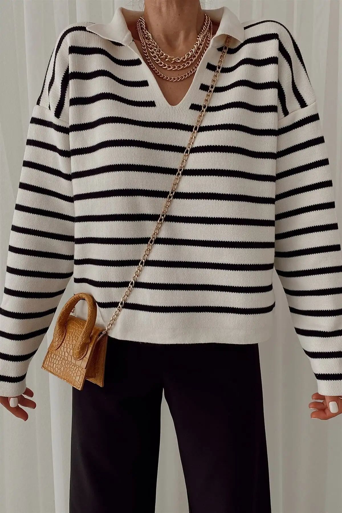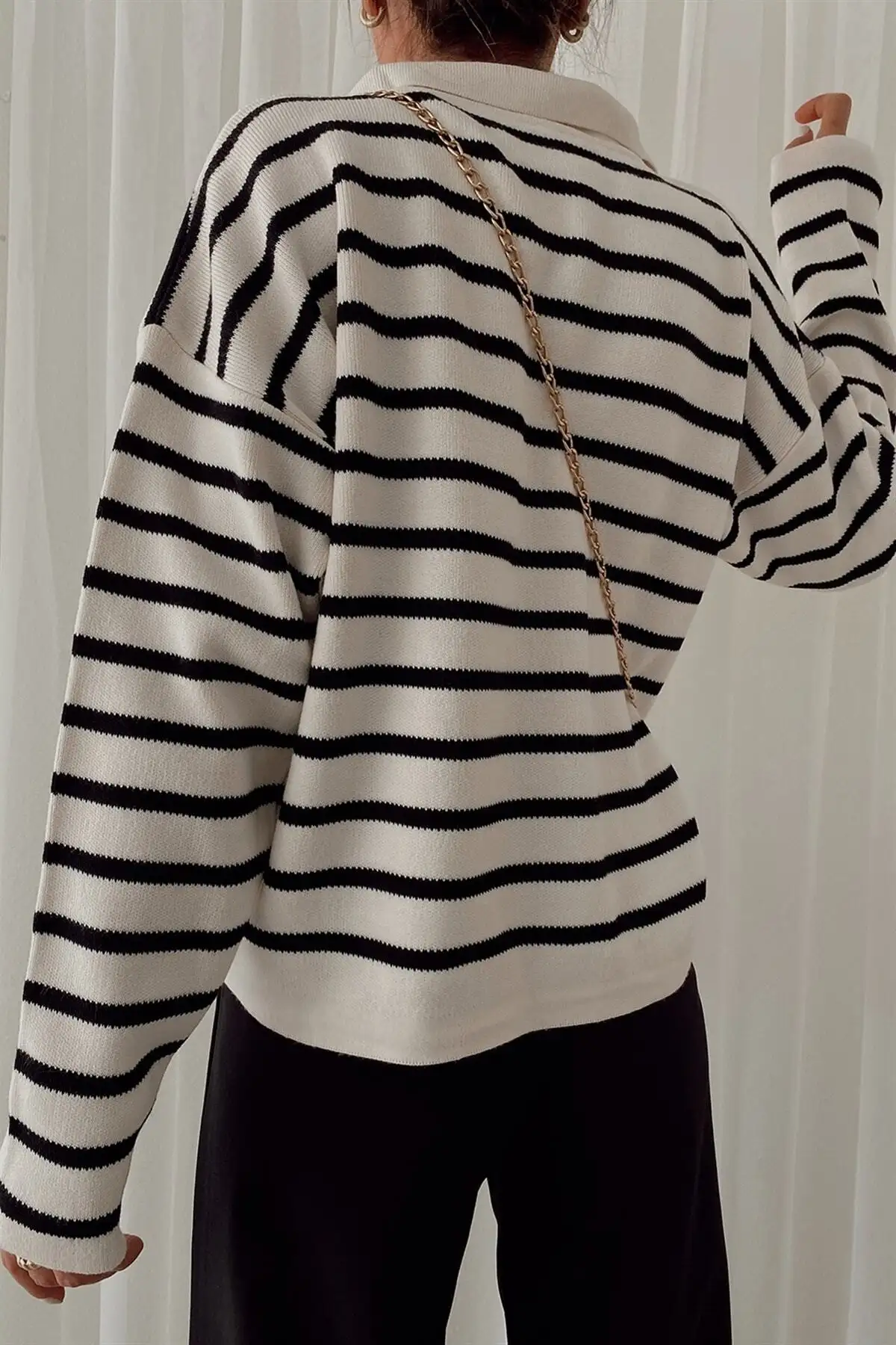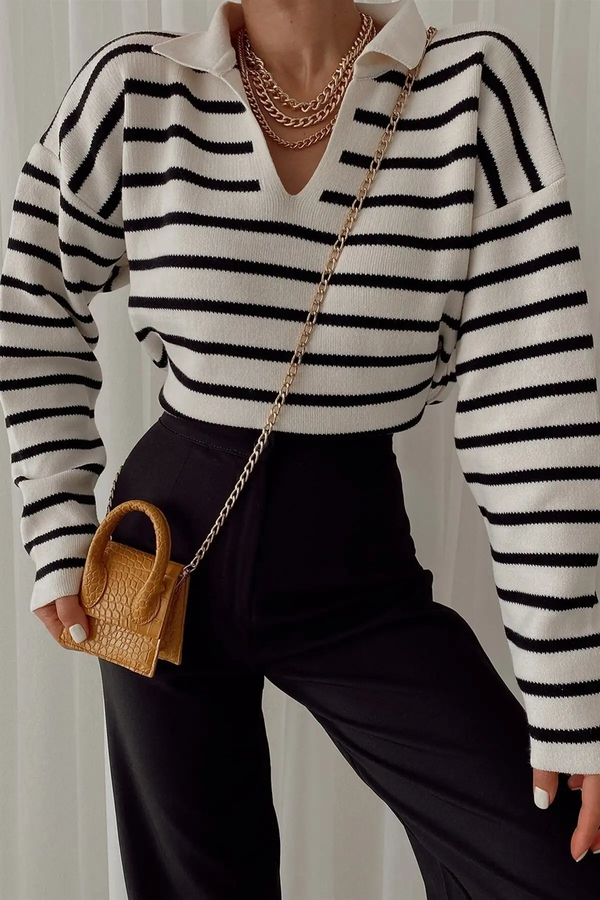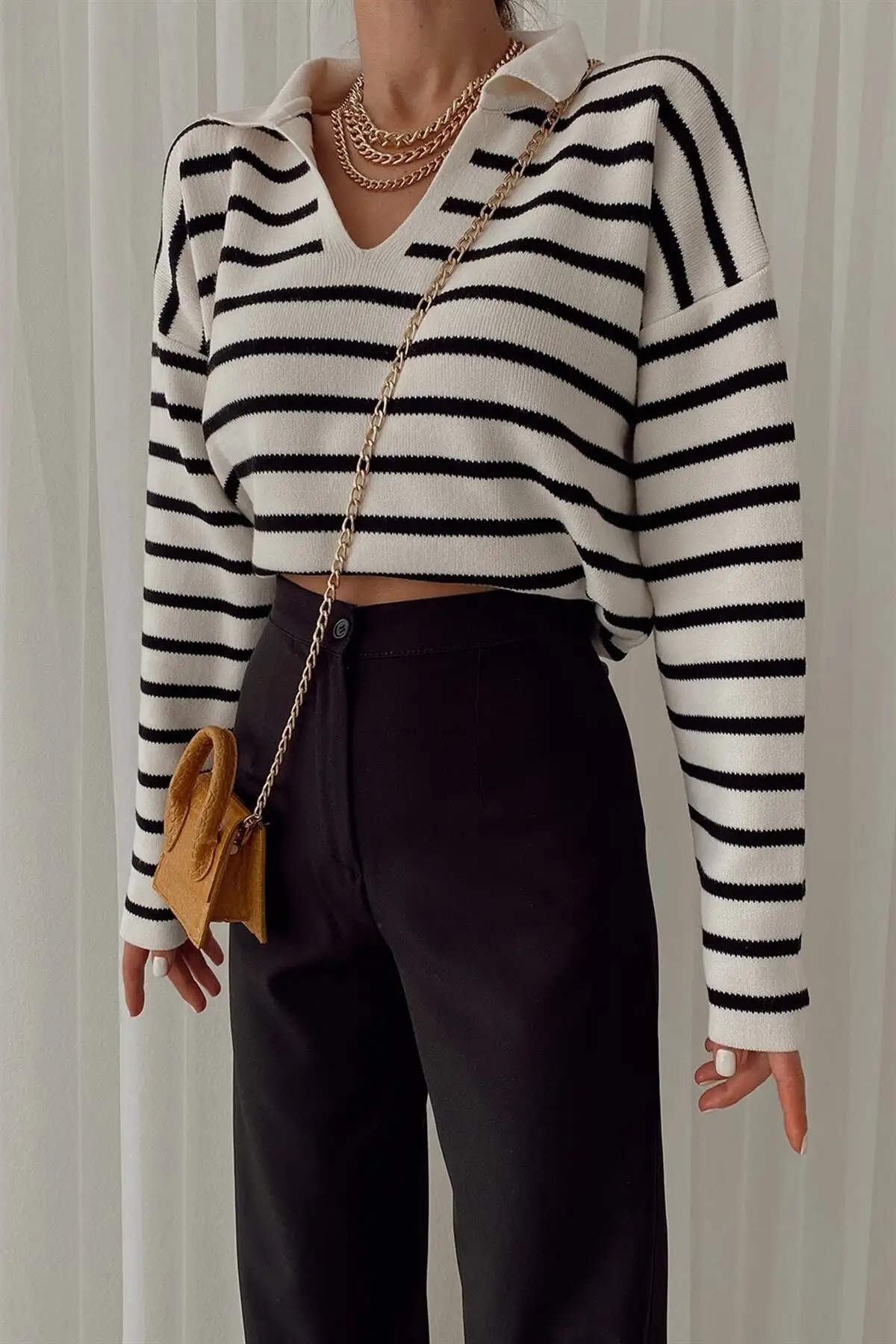 پلیور یقه پلو ترک خطدار زنانه کرم – 11753