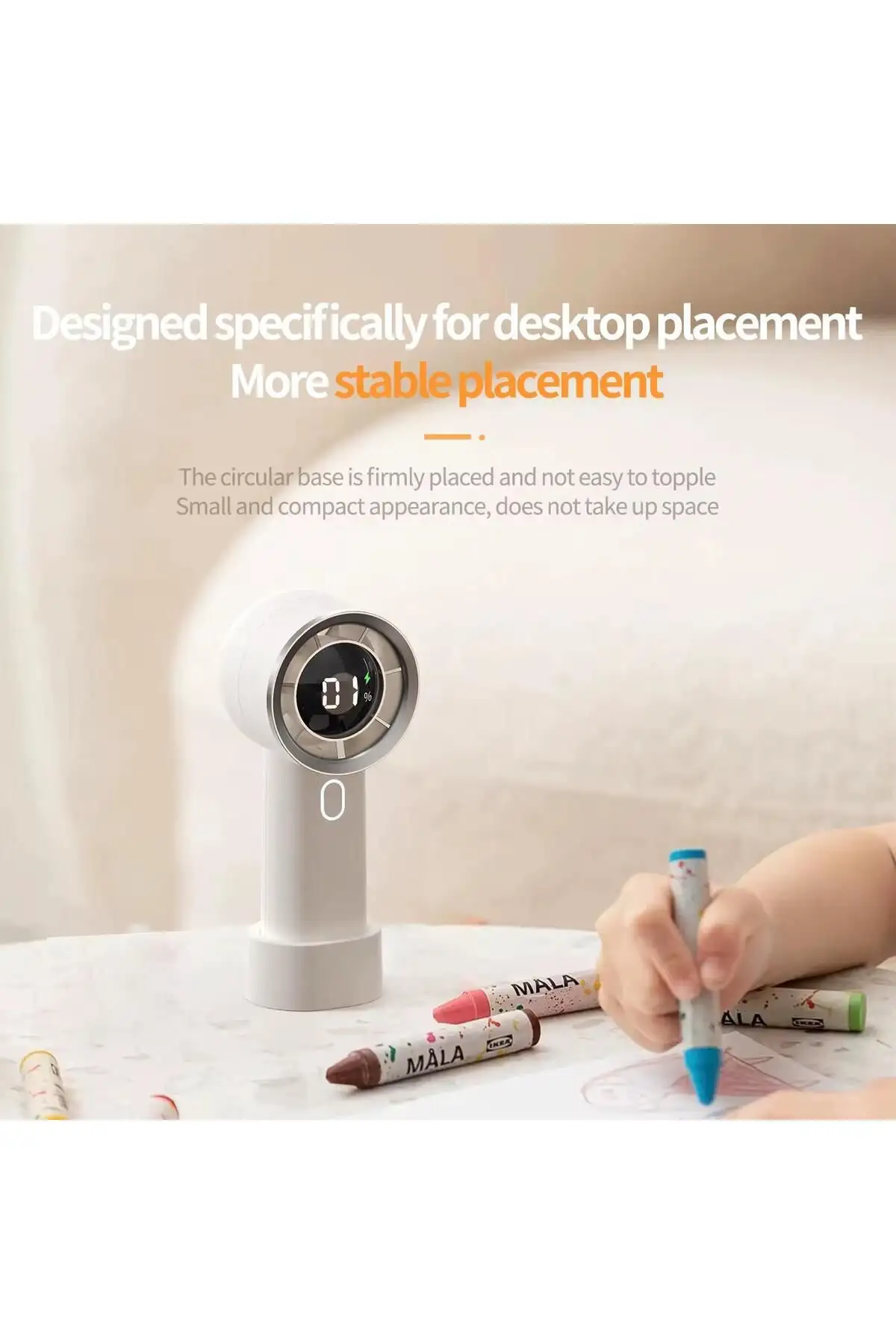 پنکه مینی قابل حمل با رنگ سفید ساده و شیک خود، به راحتی با سایر لوازم شما هماهنگ میشود. این طراحی مینیمالیستی جذابیت بیشتری به محصول میبخشد.