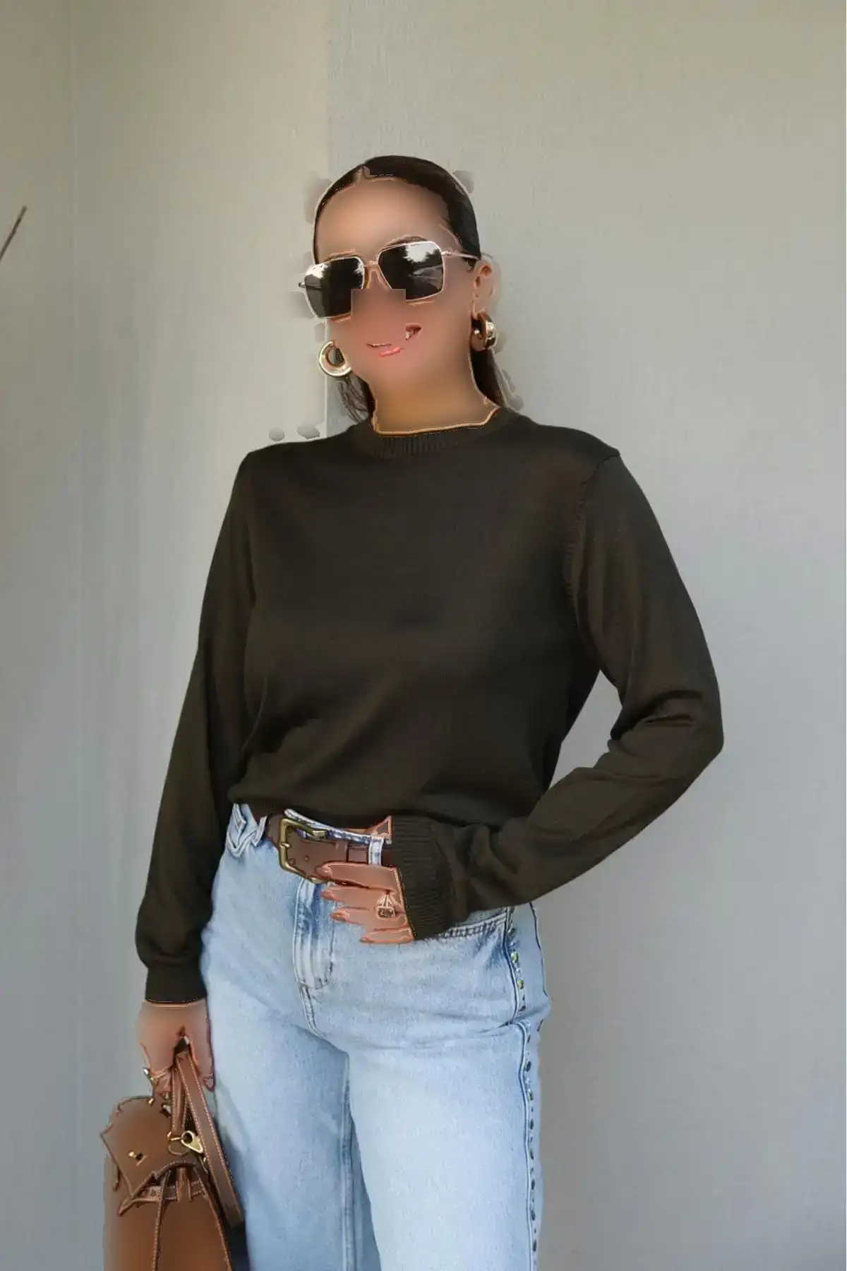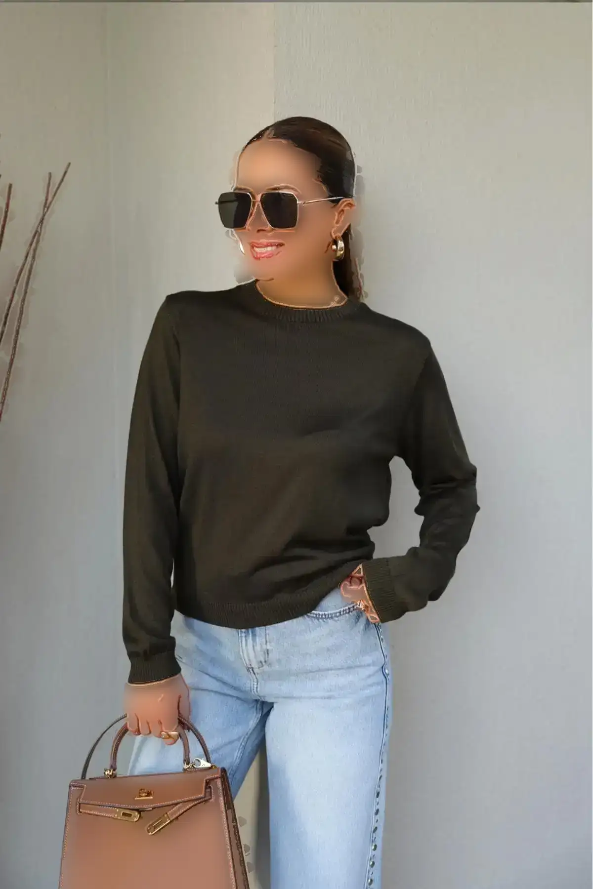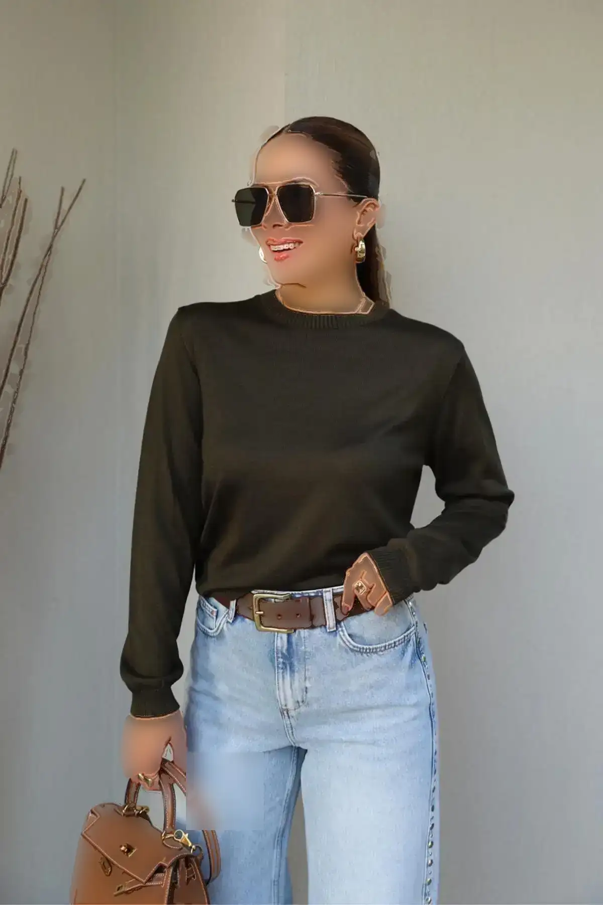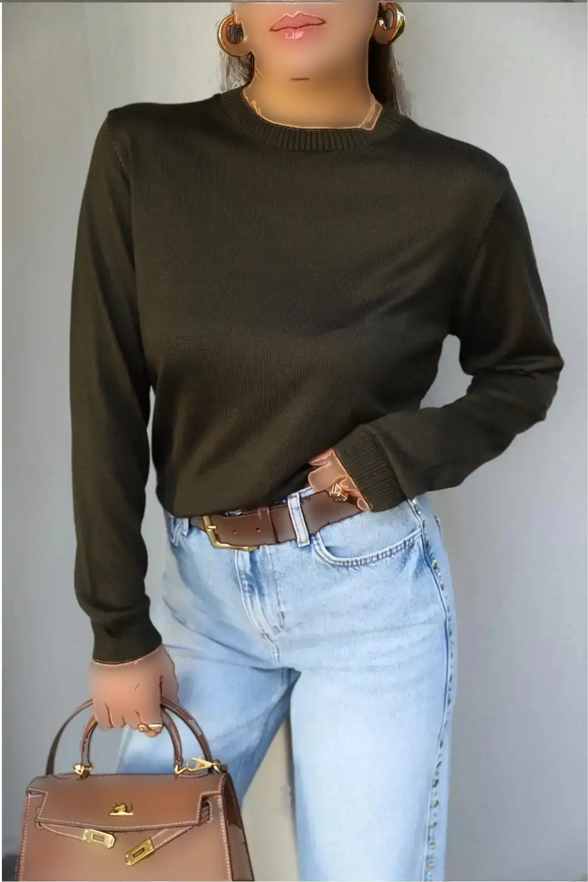 پولوشرت زنانه بافت ساده یقه گرد ترک – 11480